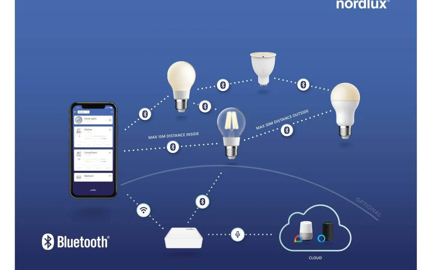 Den inbyggda ljuskällan i LED har en maximal ljusstyrka på 450 lumen (4,5W) och färgtemperaturen, precis som ljusstyrkan, är justerbar via appen från 2200 – 6500 kelvin. Observera att du inte kan styra denna ljuskälla med en vanlig väggdimmer utan endast via Nordlux Smart app.