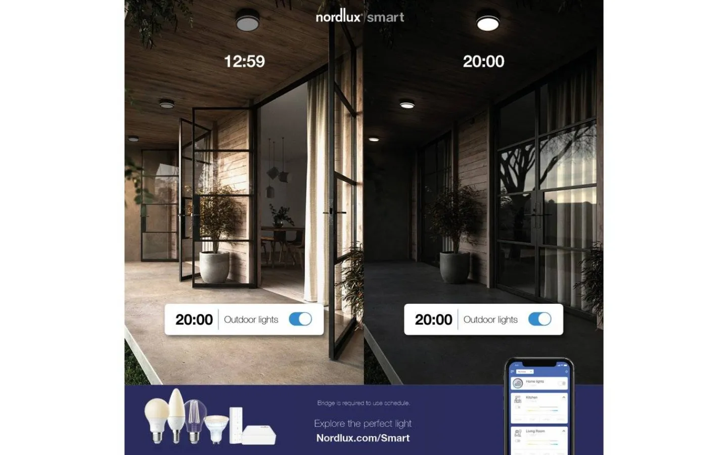 Ava är en stilren och funktionell armatur i grå metall med front i opalvit plast, som ingår i serien Nordlux Smart Light. Att den ingår i serien Smart Light innebär att du enkelt kan justera ljusstyrka via en app i din telefon, läs mer om hur detta fungerar nedan.