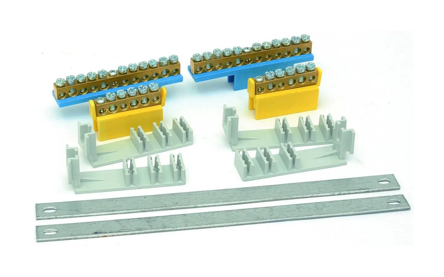 Komplett set med fästen, monteringsskenor och noll-/skyddsledarplintar för artikel 2012646.
