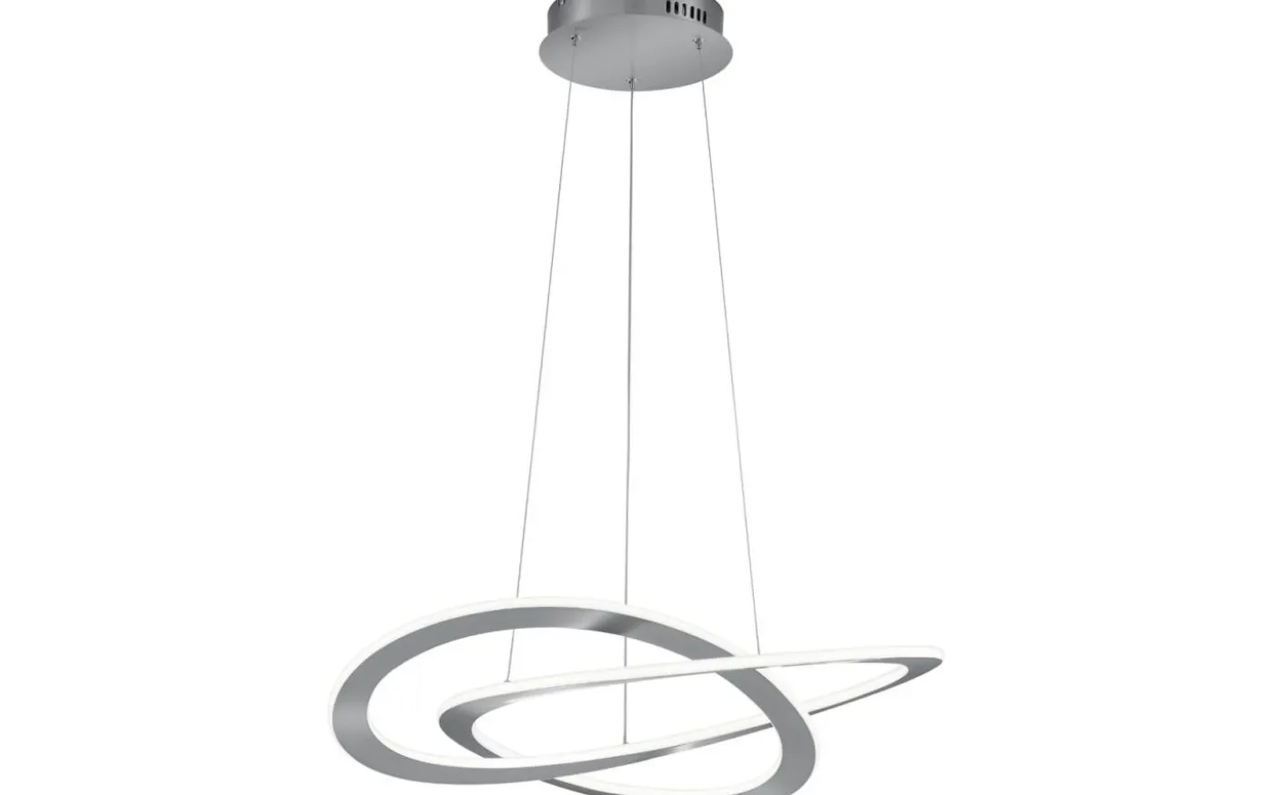 Med sin moderna och ovanliga design skapar pendellampan OAKLAND ett slående blickfång i ditt vardagsrum. Pendellampor är idealiska för att belysa specifika områden optimalt. Placerad i mitten ovanför matbordet kommer pendellampan verkligen till sin rätt och inbjuder till att umgås med vänner eller njuta av en mysig måltid. Lampan imponerar också med sina praktiska extrafunktioner. Den integrerade SWITCH-dimmern låter dig välja mellan tre olika ljusstyrkenivåer med en vanlig ljusströmbrytare. Genom att gradera ljusintensiteten från 100 % till 50 % och 25 % kan ljuset användas för att skapa olika ljusstämningar. Armaturen har en höjd på 150 cm och en diameter på 70 cm. Den matta nickelfinishen ger pendellampan en modern design som kan hittas i många inredningsstilar. Dessutom har armaturerna modern LED-teknik, vilket står för hög ljuskvalitet. LED-ljuskällor kännetecknas av lång livslängd och låg värmeutveckling. Ljuskälla: inklusive 1x SMD, 52W · 1x 6200lm, 3000K. Extra information: Justerbar i höjd, Takmontering, IP20, Ej dimbar, Dimbar via strömbrytare