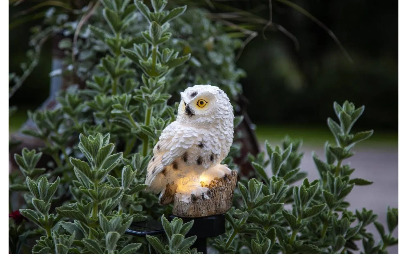 Vår vackra solcellsdrivna dekoration Owl lyser upp i mörkret med ett varmvitt sken. Denna solcellsbelysning är cirka 10x16cm för själva ugglan med bottenplatta och den sitter på en medföljande pinne som höjer upp den ytterligare 17cm. Denna solcellsdekoration är fin att dekorera med i trädgården eller på en balkong. Själva paneldelen går att vinkla så att solen lätt kommer åt att ladda batteriet som medföljer. 1 batteri AAArechargeableNiMH ingår. Batteritid ca 6h.