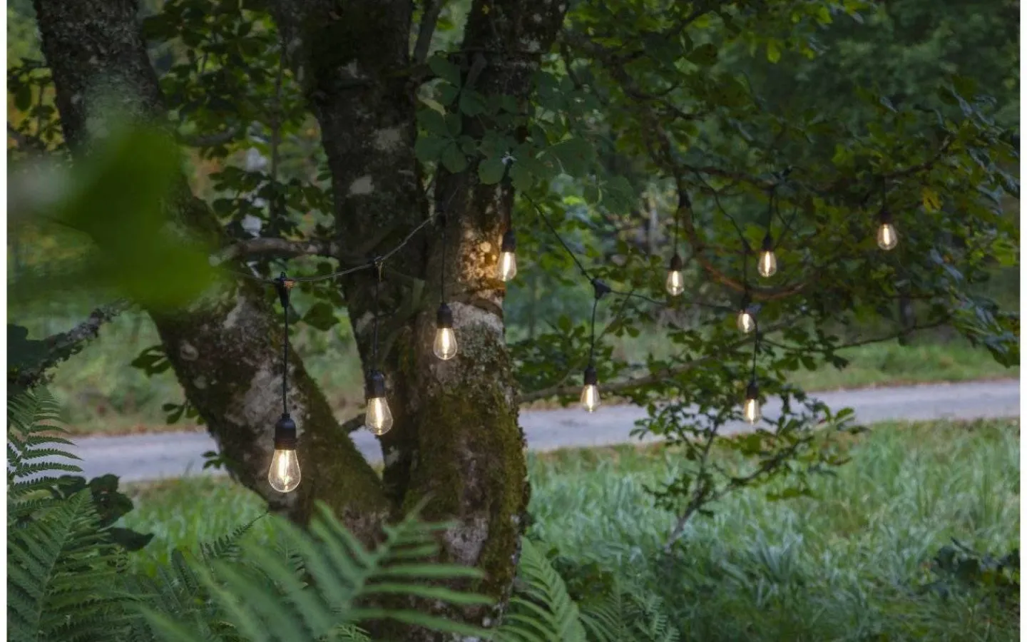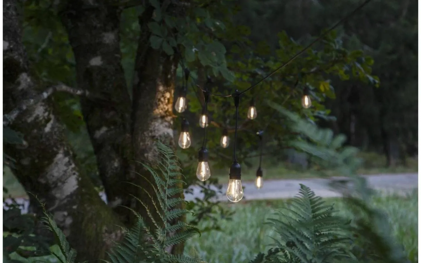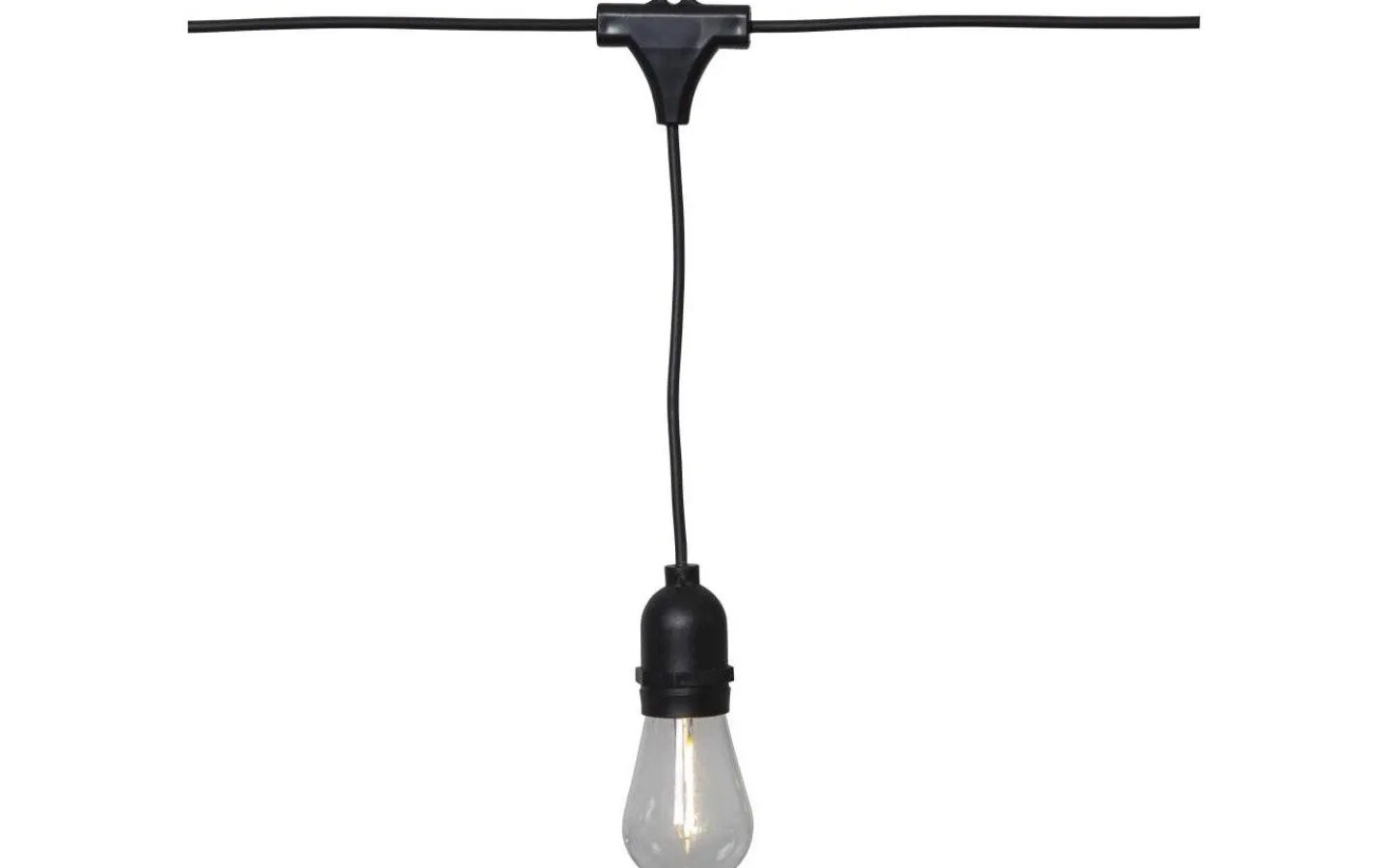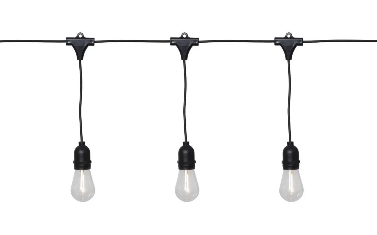 String från välkända Star Trading. Partyljusslinga med 10 st klara ljuskällor med filament LED inuti längden på ljusslingan är 3,6 meter. Härlig inredningsdetalj med till partytält, balkong eller till vardags. Ger ett vackert varmvit sken i mörkret.