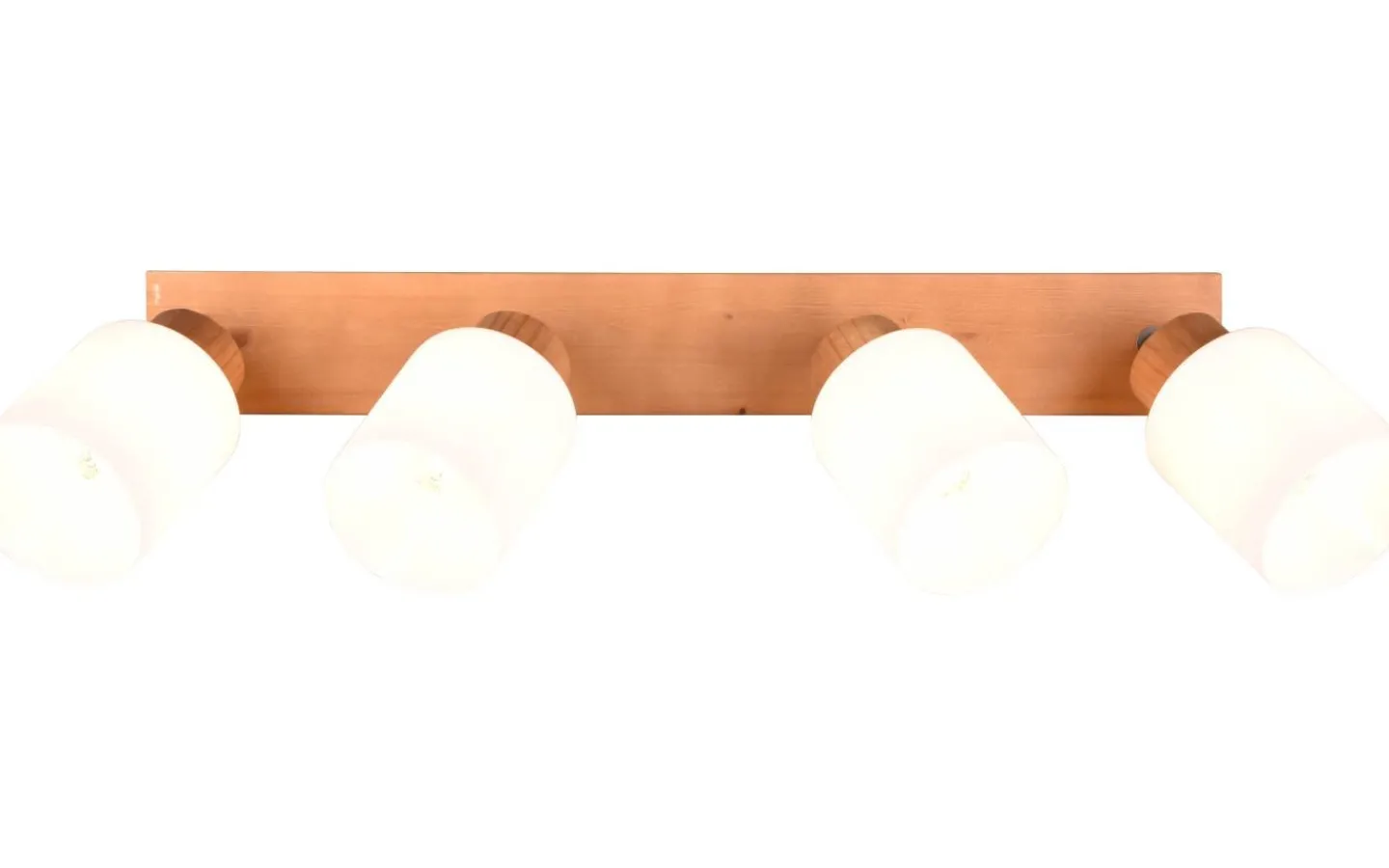 Mysigt och variabelt ljus tack vare ASSAM spotlight-serien. Spotlighten med fyra lampor övertygar med sina justerbara lampskärmar och sätter fokus i önskade riktningar med behagliga ljusaccenter. Oavsett om det är i hallen, vardagsrummet eller sovrummet – med den moderna blandningen av trä och vitt glas ser lampan tidlös och modern ut och skapar en unik boendeatmosfär. För modern och pålitlig belysning rekommenderas en LED-lampa. Den erbjuder hög ljuskvalitet, är mångsidig och övertygar med jämn belysning. Dess långa livslängd och låga värmeutveckling gör den till det perfekta valet för en mängd olika användningsområden. Ljuskälla: exklusiv 4x E14 · max. 25W. Extra information: IP20, Lampa(or) ingår ej, Vägg- och takmontering