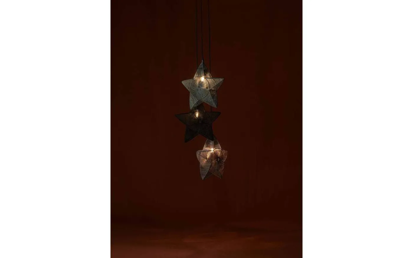 Regina hängande adventsstjärna med en ram av metall som virats in i garn för hand. En modern geometrisk form som passar den skandinaviska stilen. Sprider ett fint ljus och skapar en härlig julstämning i hemmet.