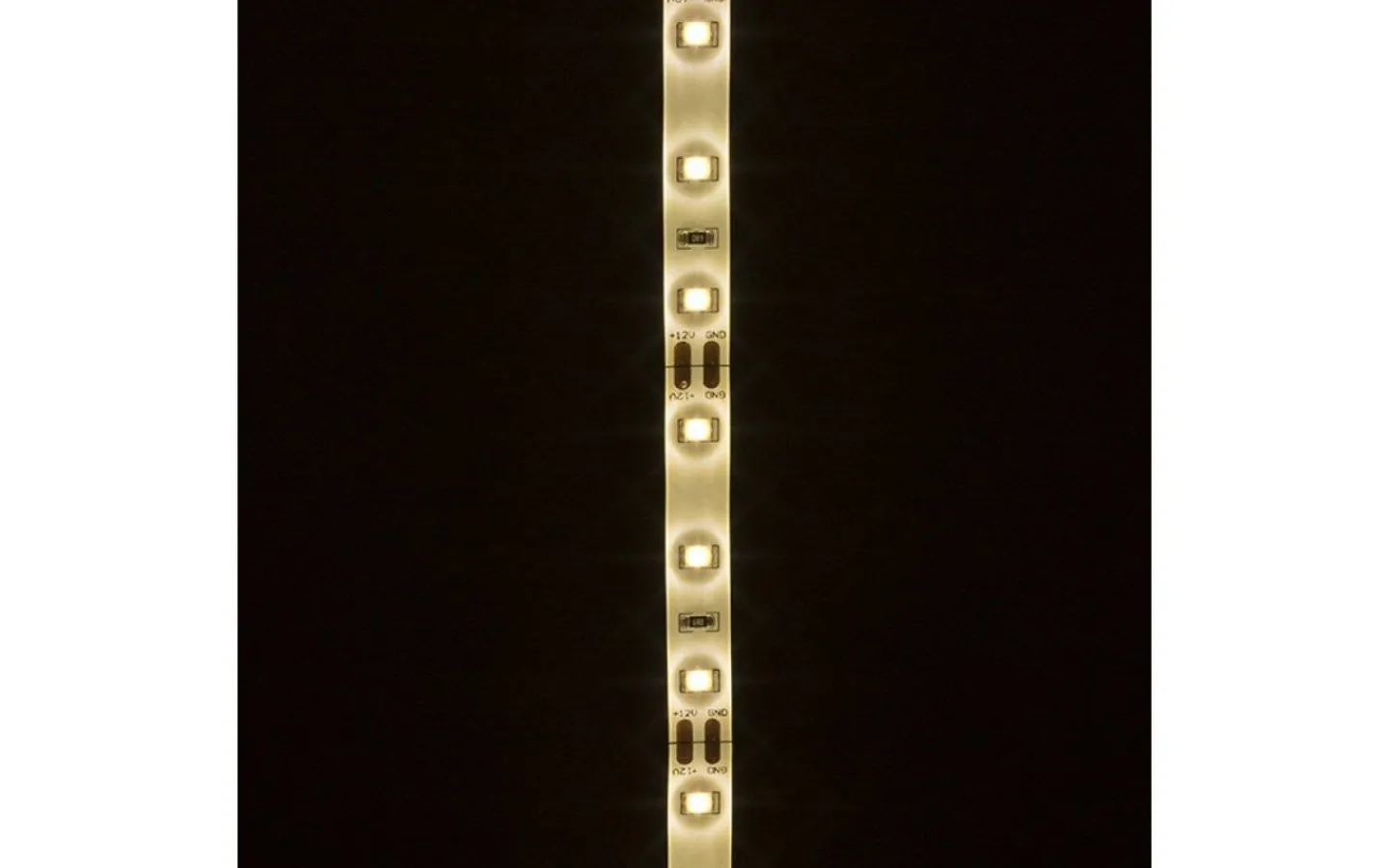 LED strip för dekorativ inomhus- och utomhusbelysning, lämplig för våtutrymmen. Säljs i förpackningar om 5 meter, och är delbar var 5:e cm. Dubbelsidig tejp på baksidan. Denna ledstrip lyser med ett varmvitt ljus på 3000K.