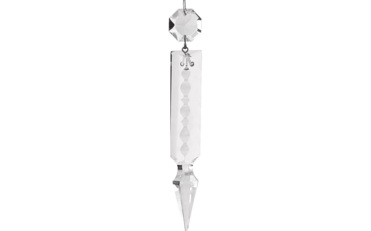 Klassisk handslipad prisma i Oskariansk stil som ofta förekommer som extra prydnad på exempelvis lampetter eller i skärmkanten på större fotogenlampor. Slipat kristallglas 12 cm