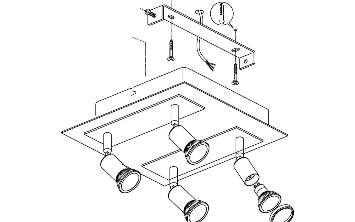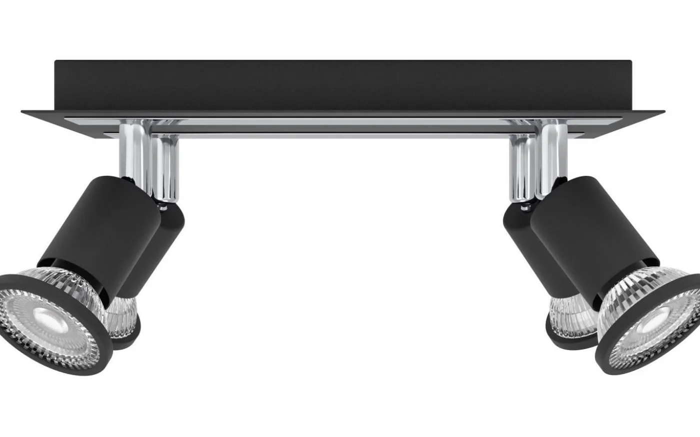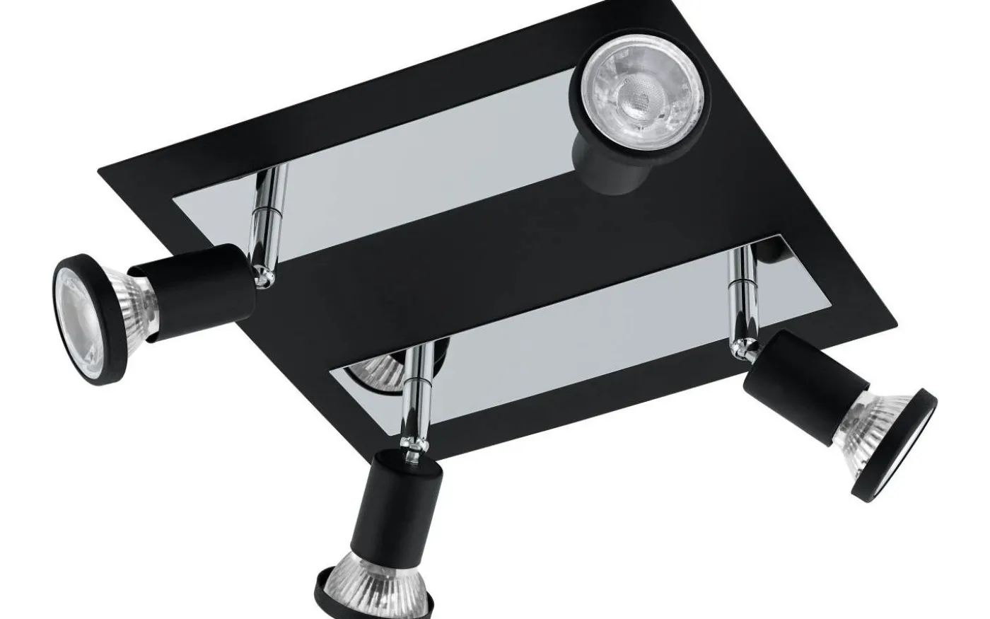SARRIA LED-taklampan har en fyrkantig svart metallkropp och fyra justerbara svarta metallspotlights. Lampan har även kromfärgade metalldetaljer, som perfekt kompletterar den minimalistiska designen. De vridbara strålkastarna låter dig justera ljuset för att accentuera enskilda delar av rummet, oavsett om det är i köket, vardagsrummet, sovrummet eller hallen. Produkten innehåller GU10 LED-glödlampor, som ger ett behagligt varmvitt ljus.
