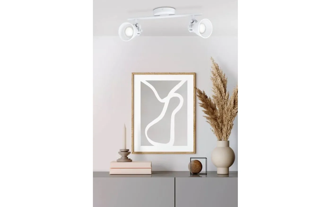 SERAS 1 LED-taklampa har ett vit metallfäste och två justerbara vita metallspotlights. Takspotlightens trendiga utseende kompletterar perfekt moderna interiörer och ger fokuserad belysning i kök, vardagsrum, sovrum, hall eller matsal. Produkten inkluderar de avbildade GU10-glödlamporna, som ger ett behagligt varmvitt ljus.