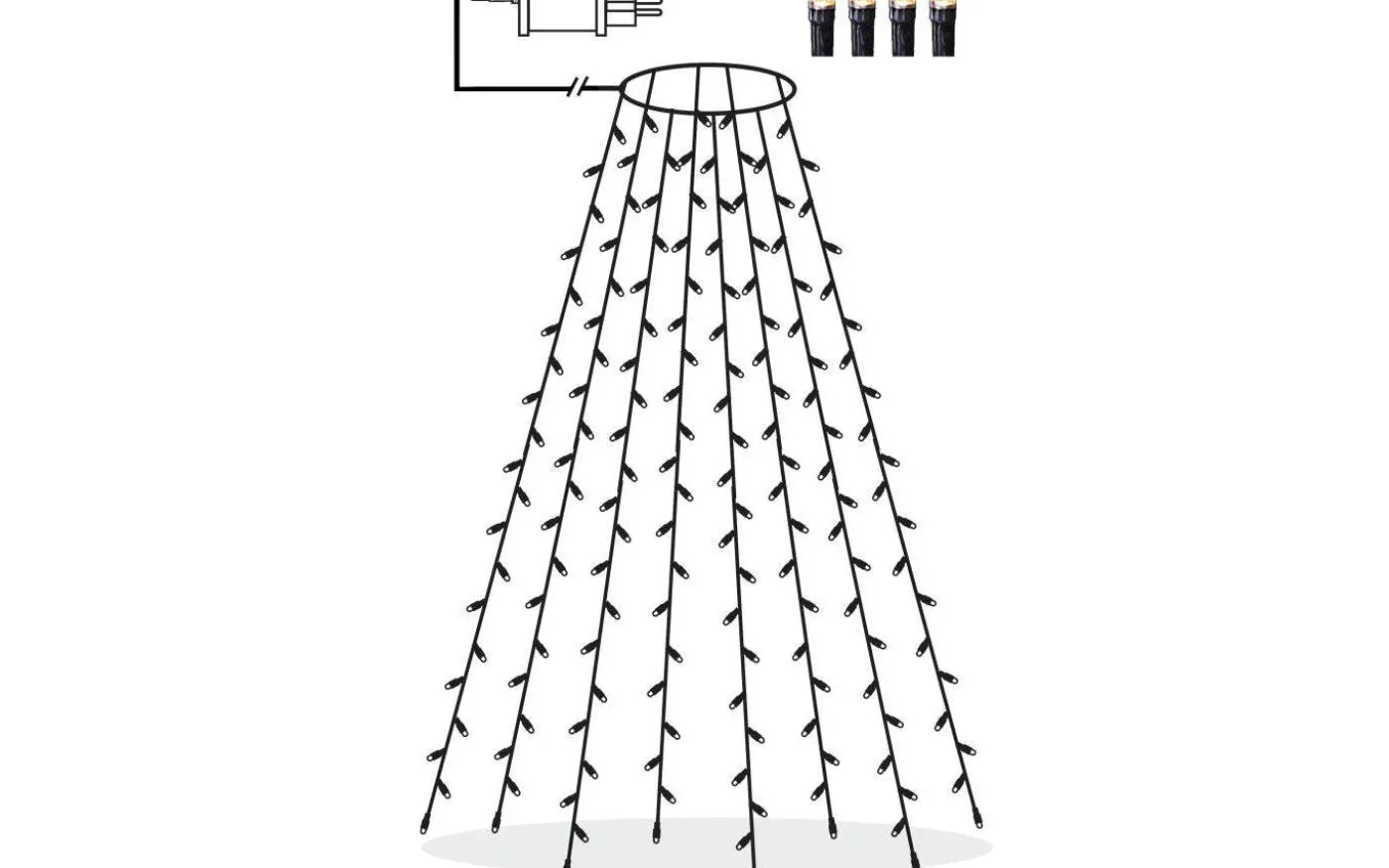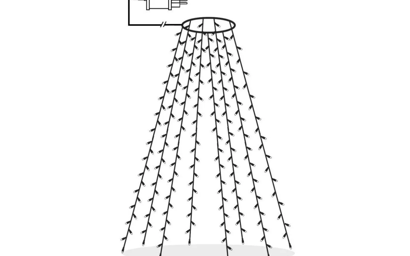 Julgransslinga med 160LED lampor med vackert varmvitt ljussken. Slingan är ca 2 meter hög med 8 strängar som delar sig för att få en jämn spridning av lysdioderna. Perfekt för din julgran både inne och utomhus.