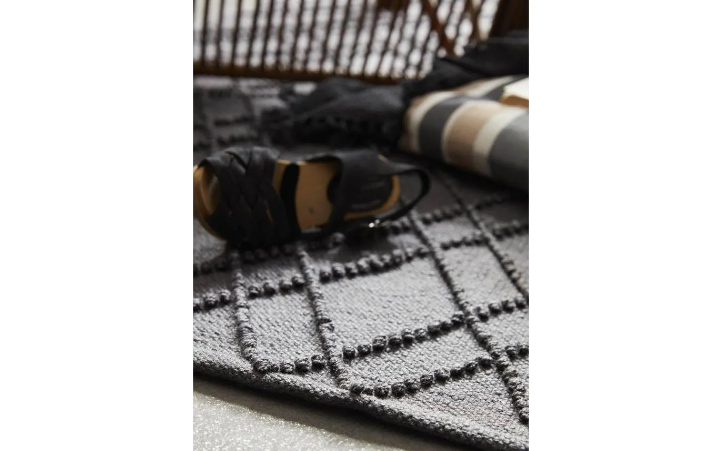 Vävd matta av återvunnen PET med mönster ton i ton. Mattan är mjuk och har en känsla av bomull men är tillverkad av återvunna PET flaskor. Mattan kan användas både inomhus och utomhus. Vid användning utomhus så häng gärna upp din matta på tork om den blivit blöt av regn. Måttet är 160x230cm. Produkten är certifierad enligt STANDARD 100 by OEKO-TEX®. Certifieringen garanterar att produkten är testad och fri från ämnen som kan vara skadliga för hälsan och miljön. Tvättas i skontvätt med liknande färger. Torktumlas ej..
