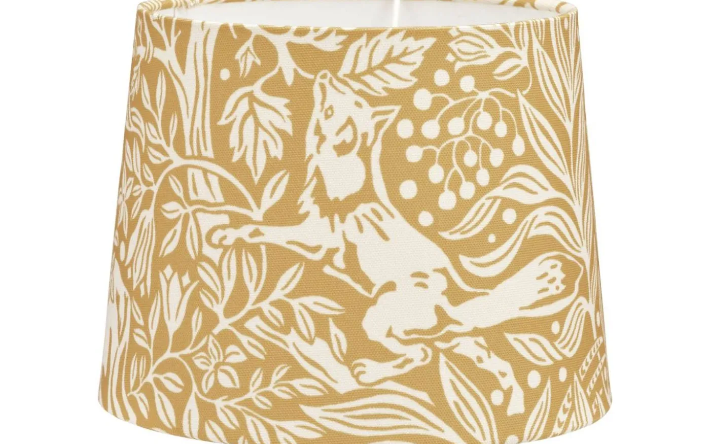 Sofia lampskärm från PR Home här i mönstret Under the Elder Tree i mörk lejongul färg. Lampskärmen har E27-ringfäste.