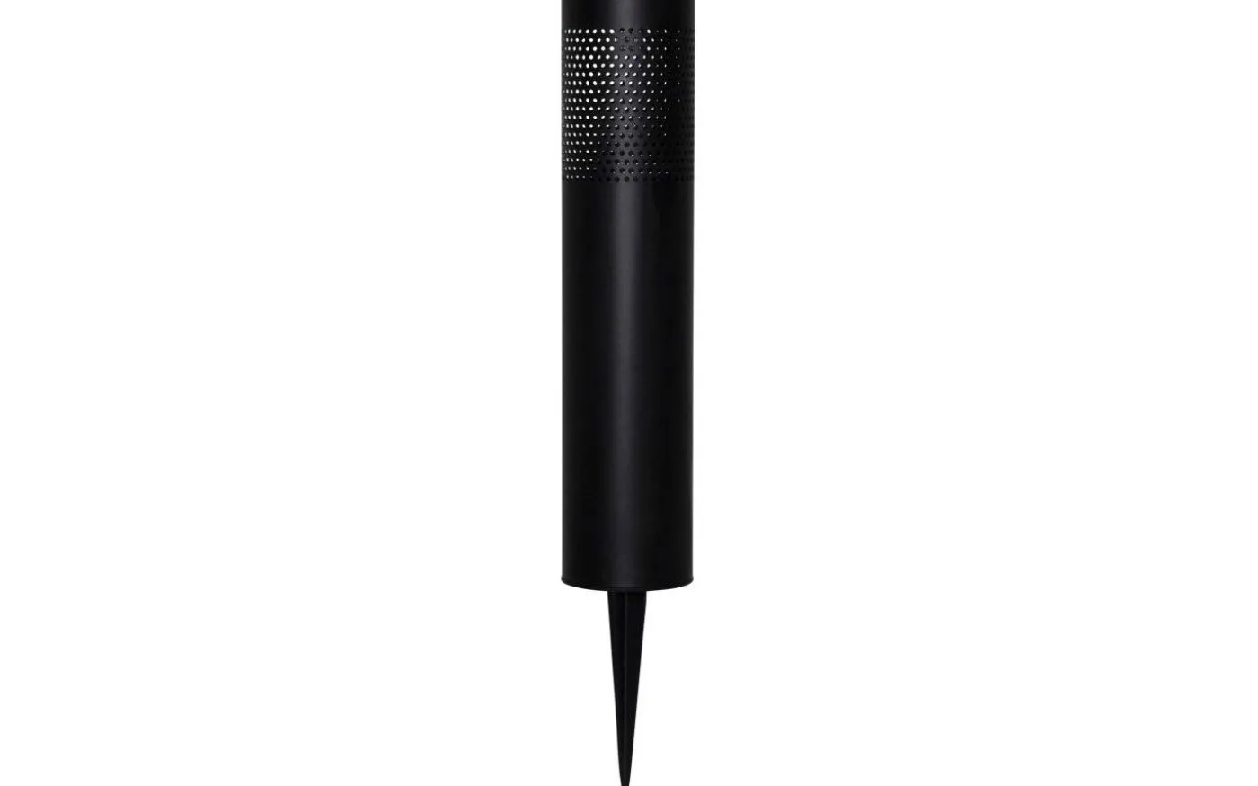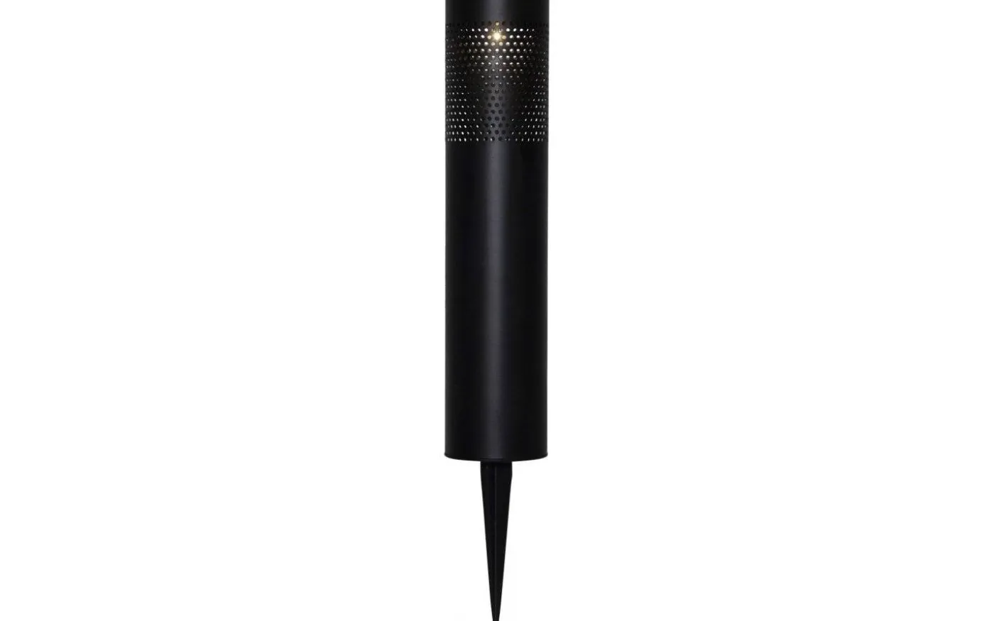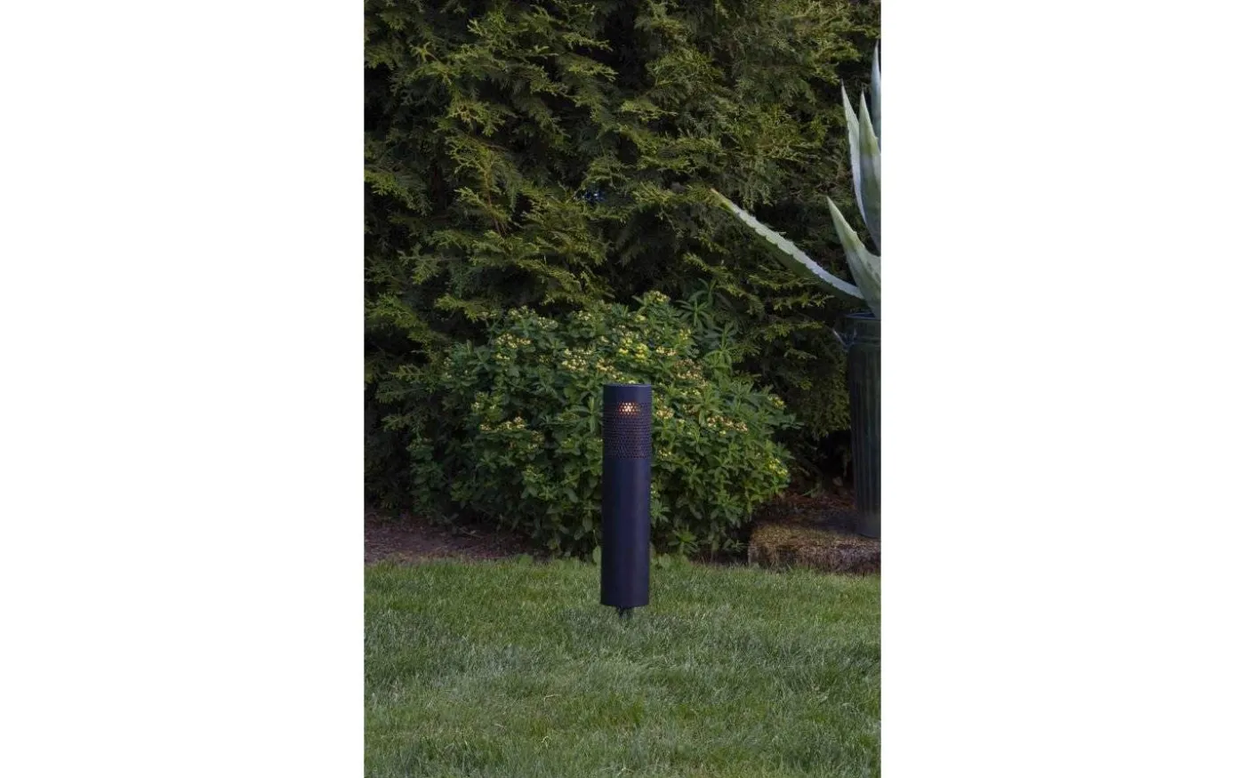 Fin pollare i svart metall som bildar ett vackert ljussken genom hålmönstret.
