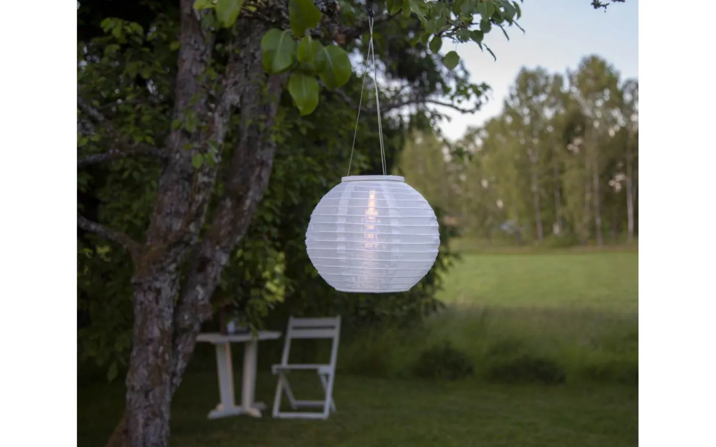 Härlig solcellslampa i form av en rislykta och lyser i ett mysigt varmvitt sken.