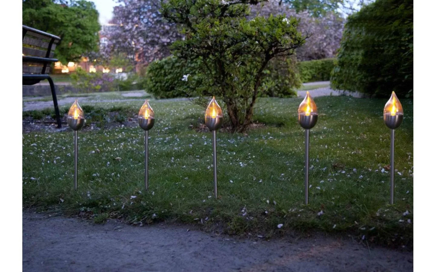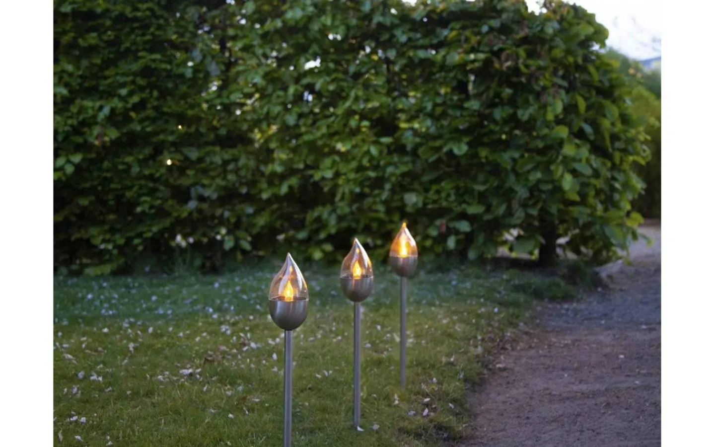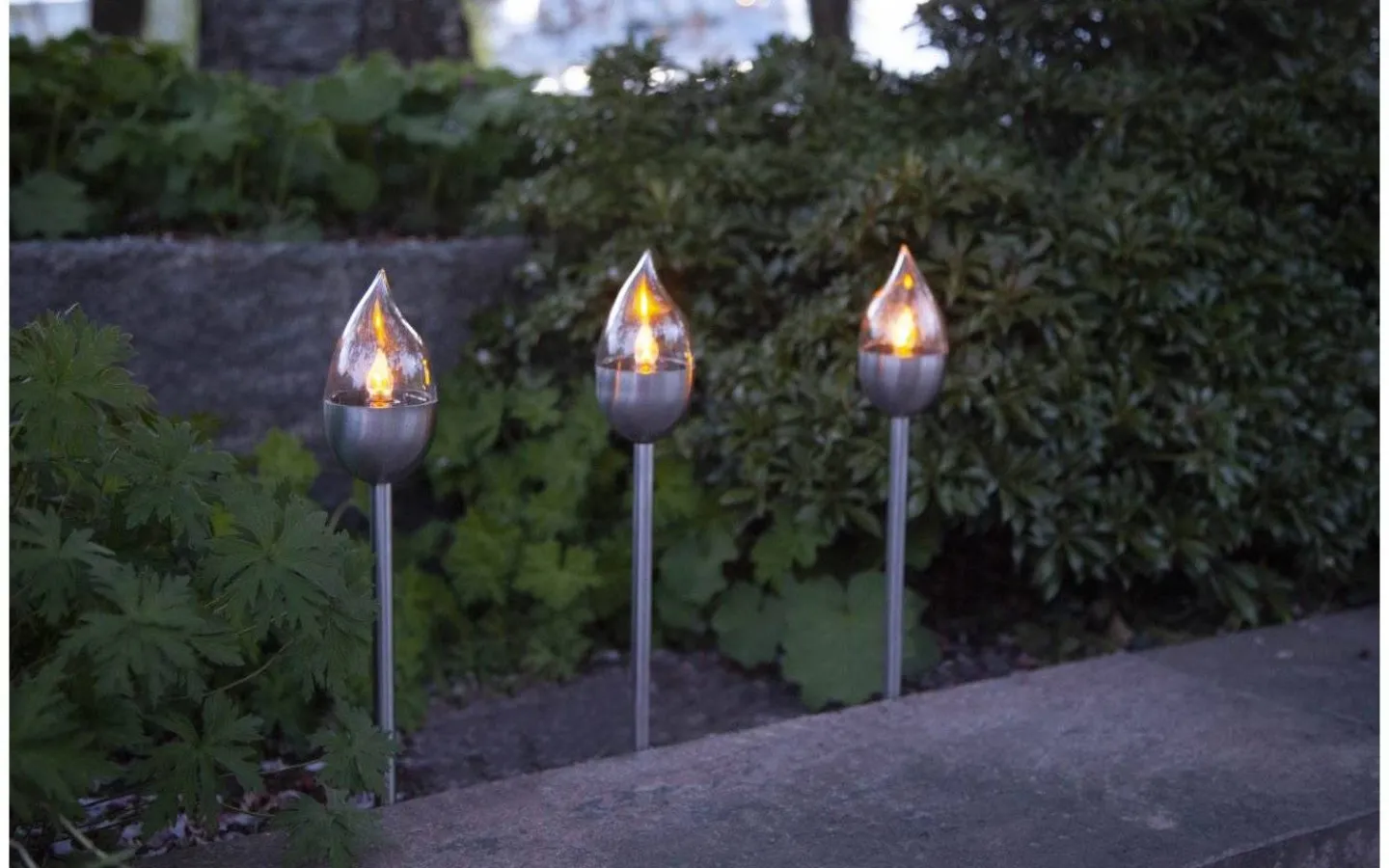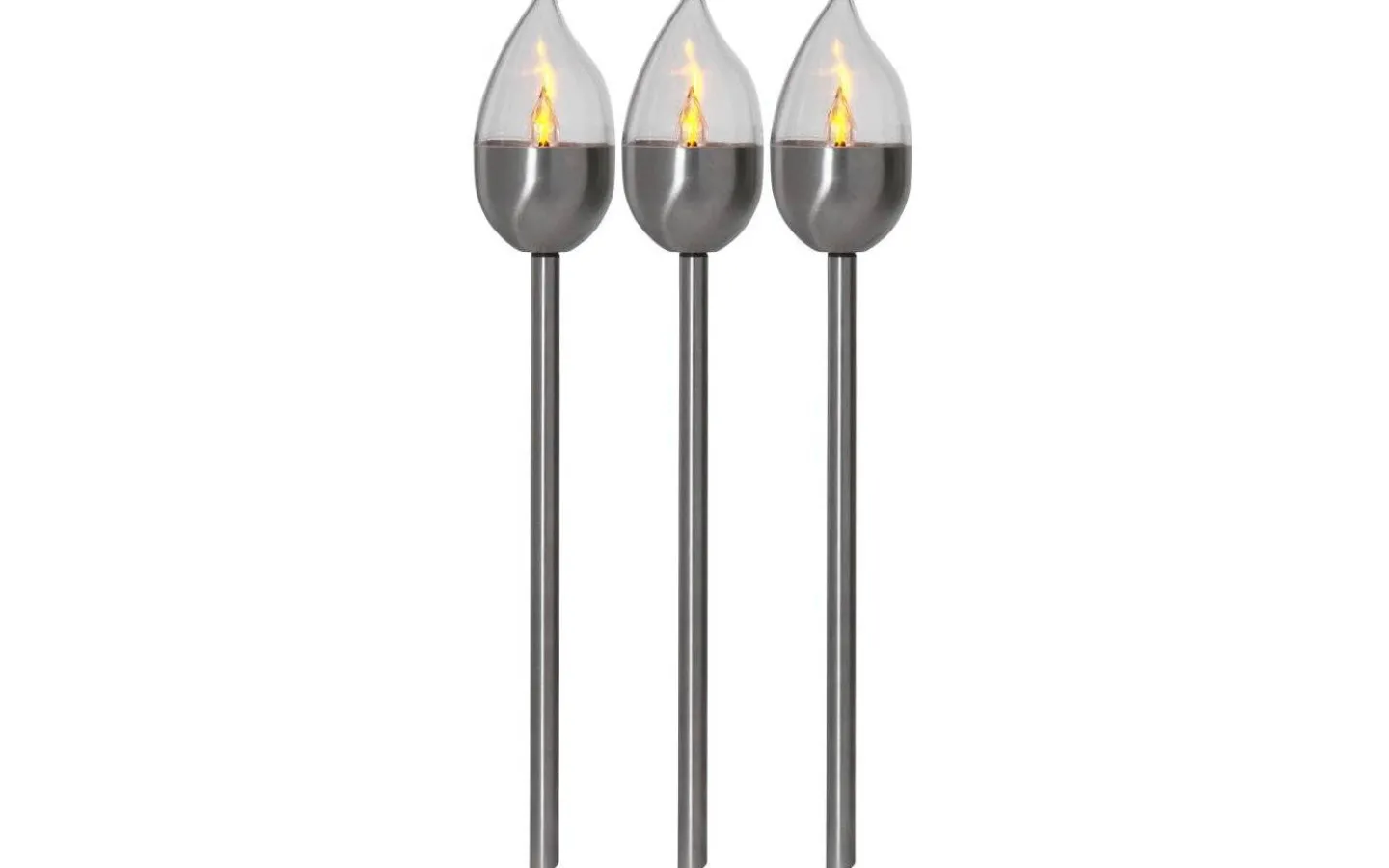 Olympus består av ett 3-pack med solcellslampor i rostfritt stål med en inbyggd LED-lampa som flammar likt en brinnande låga under mörker, från varumärket Star Trading. Varje lampa har en höjd på 40 cm och blir en fin dekorationsbelysning att placera längs en trädgårdsgång eller i en rabatt.