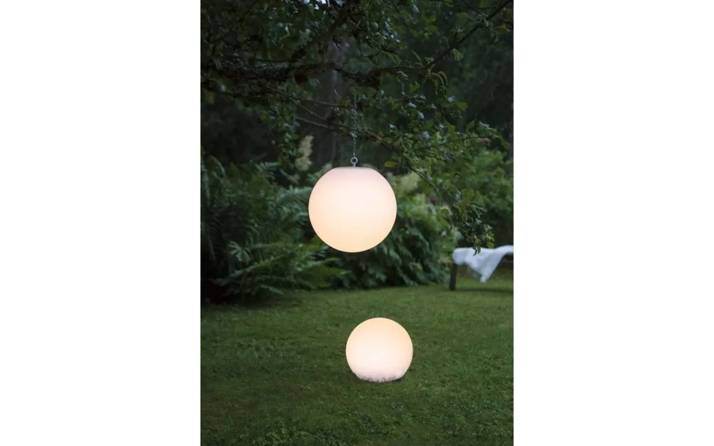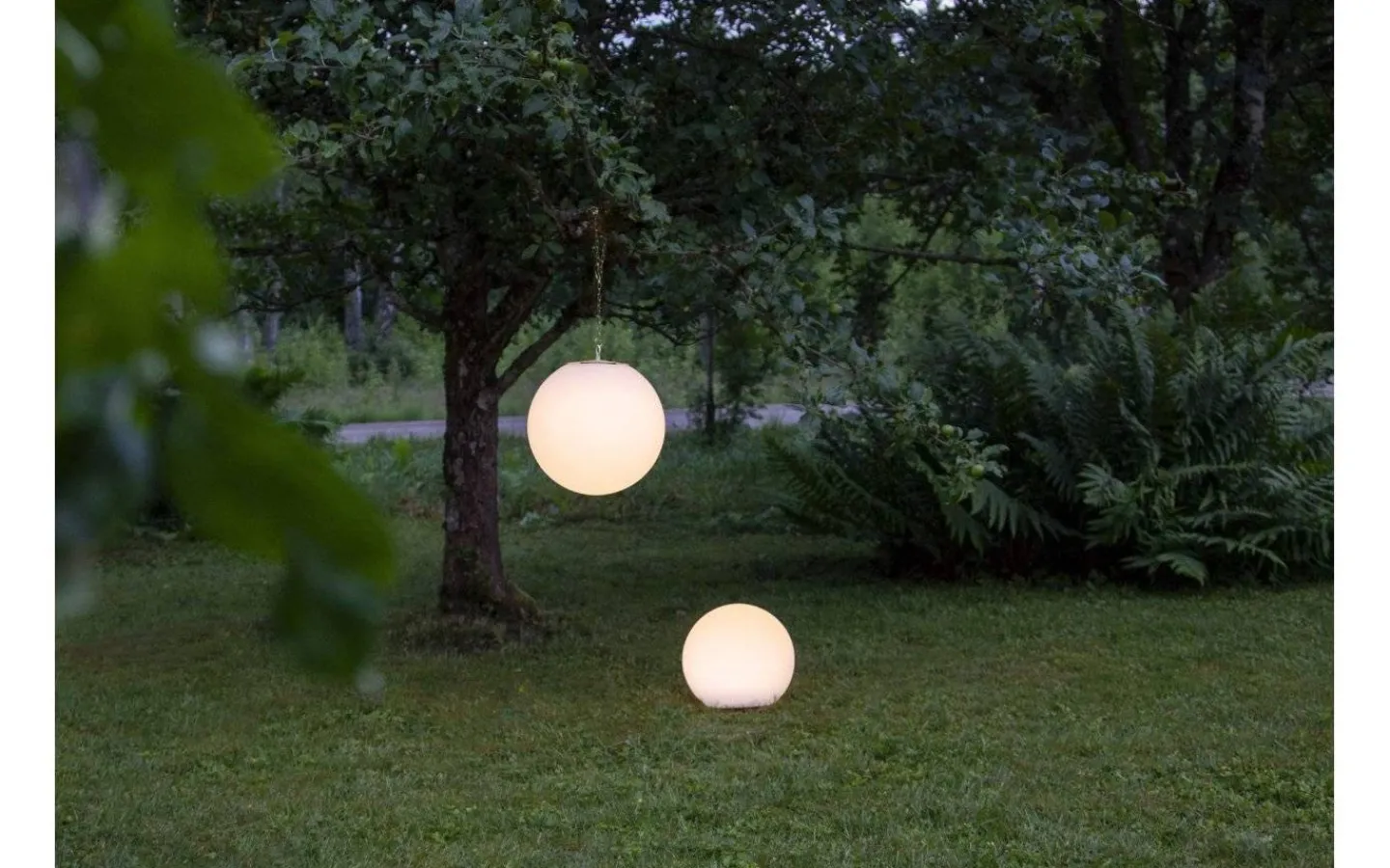 Solcellsdriven dekorationsboll som är fin att sätta vid uteplatsen eller på balkongen. Lyser med varmvitt sken när mörkret faller.