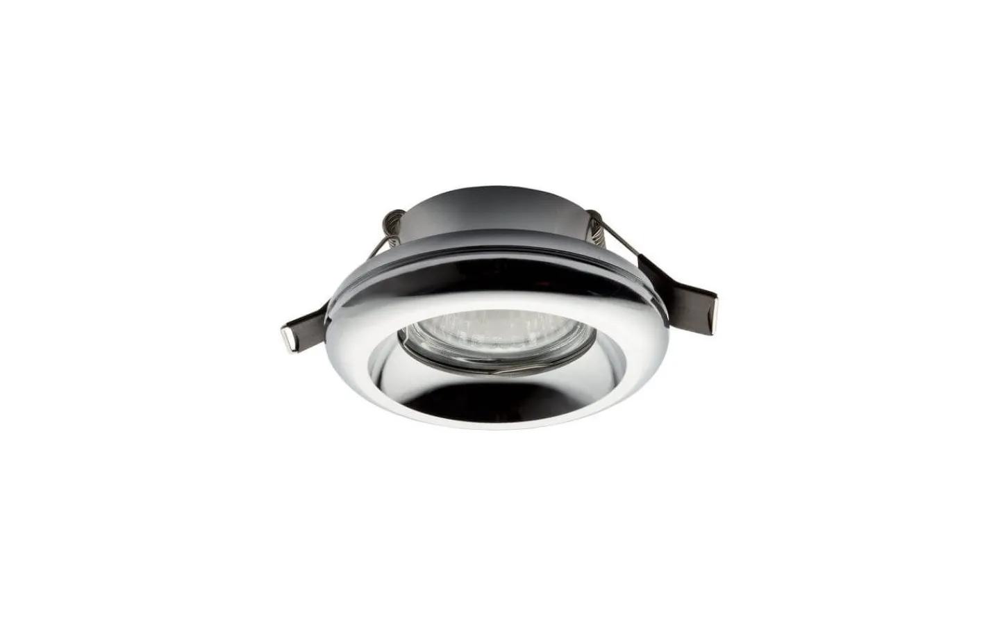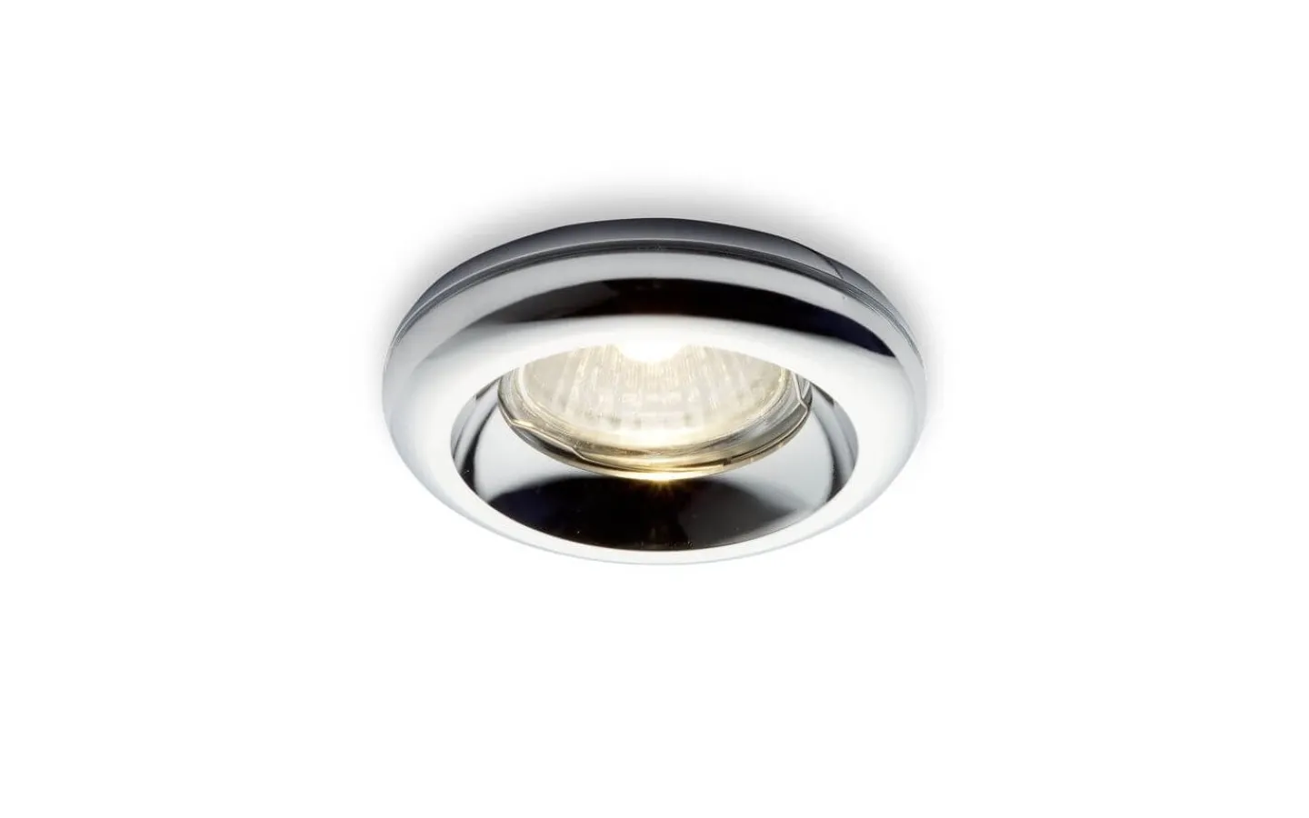 Infälld spot med en böjd ram i krom för en GU10 ljuskälla. Endast för gipsväggar.