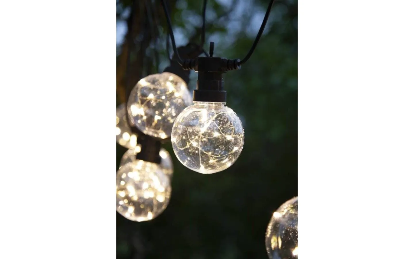 Big Circus ljusslinga är en strömdriven ljusslinga i svart med 10 stora glober i transparent hårdplast. Inne i varje glob finns en tunn ljusslinga fylld med små, fina LED-lampor. Lamporna avger ett mysigt, varmvitt ljussken och denna ljusslinga blir en härlig dekoration utomhus som inomhus.