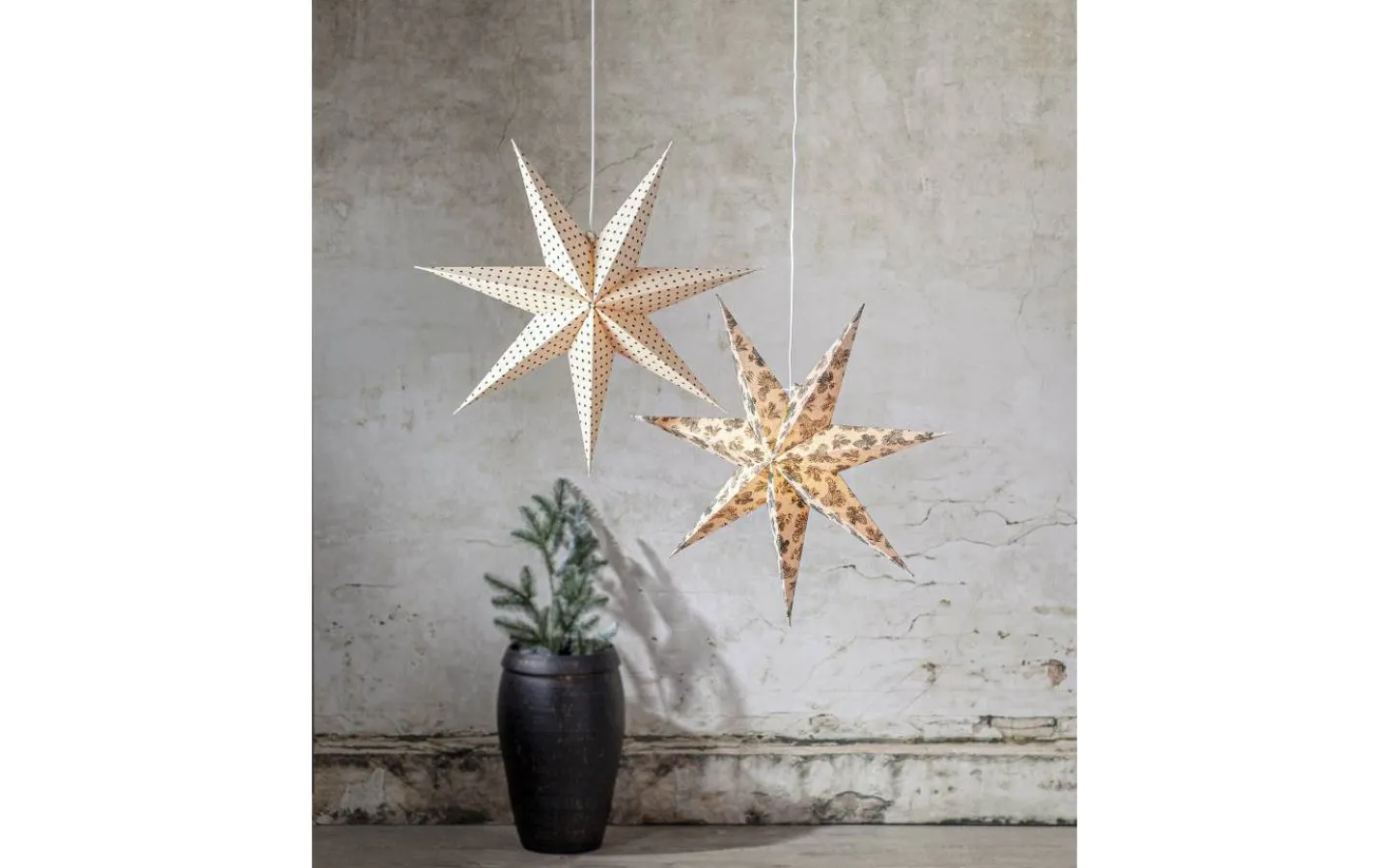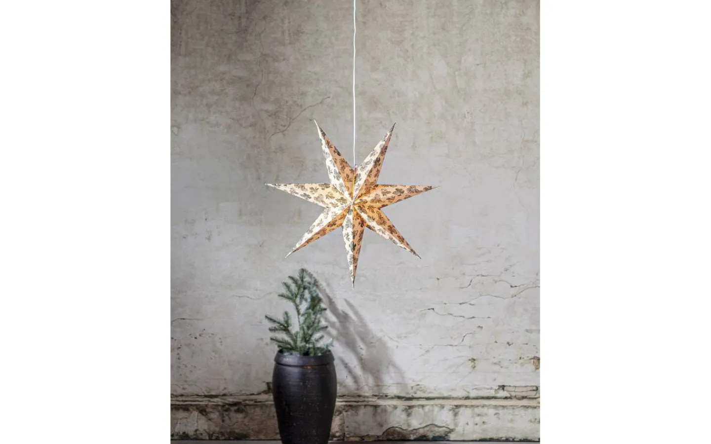Cotton julstjärna levereras utan sladd. Vi rekommenderar att du använder ljuskälla i LED till alla pappstjärnor. Både sladdställ och passande ljuskällor finner du under ”Tillbehör”.