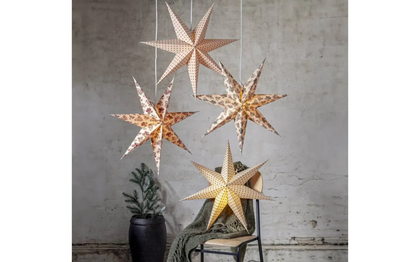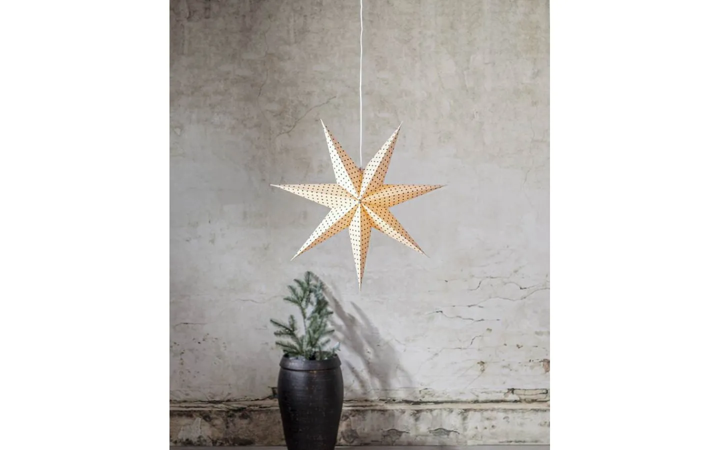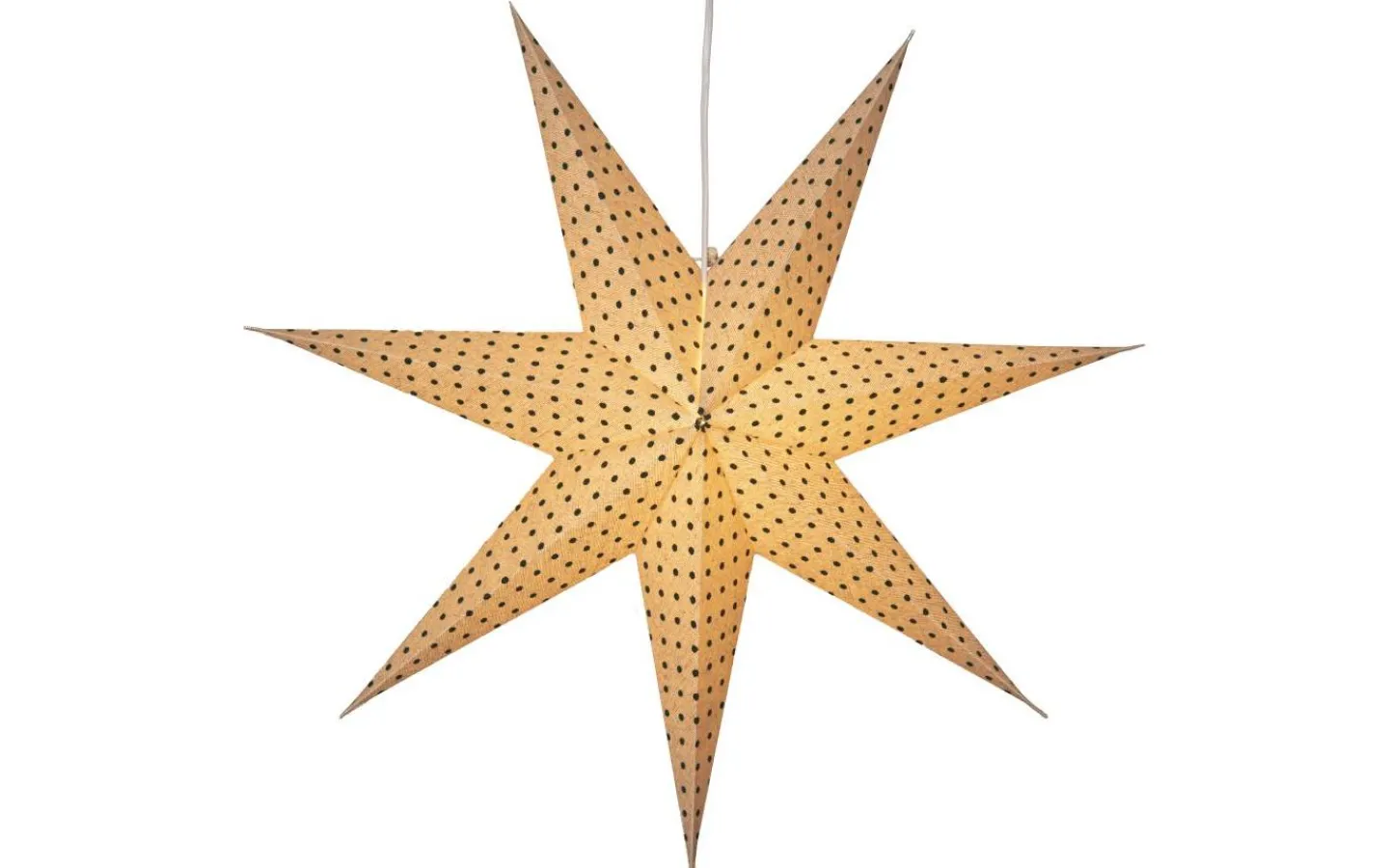 Cotton julstjärna levereras utan sladd. Vi rekommenderar att du använder ljuskälla i LED till alla pappstjärnor. Både sladdställ och passande ljuskällor finner du under ”Tillbehör”.