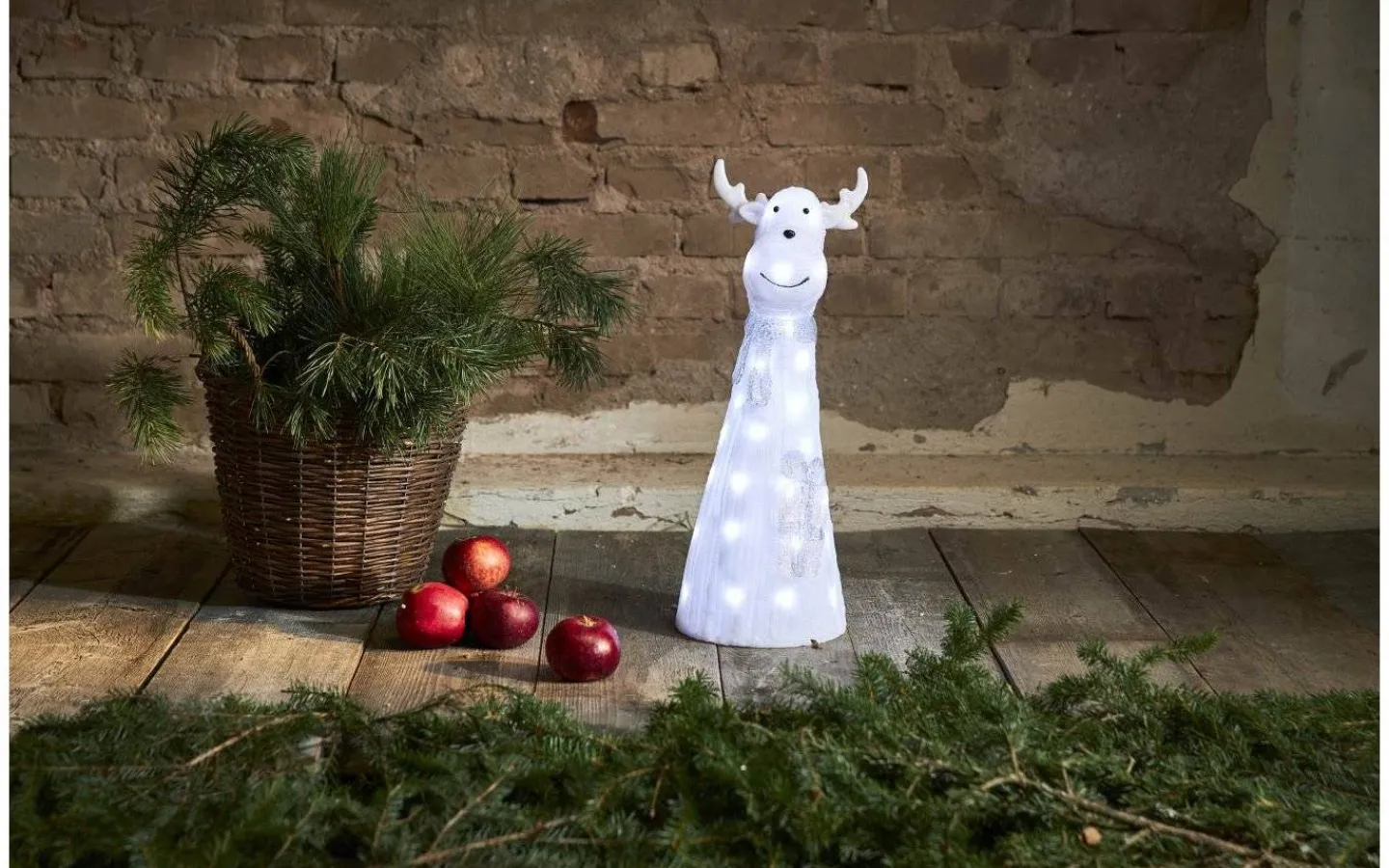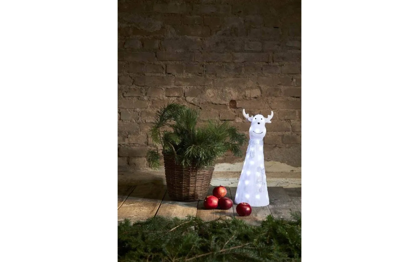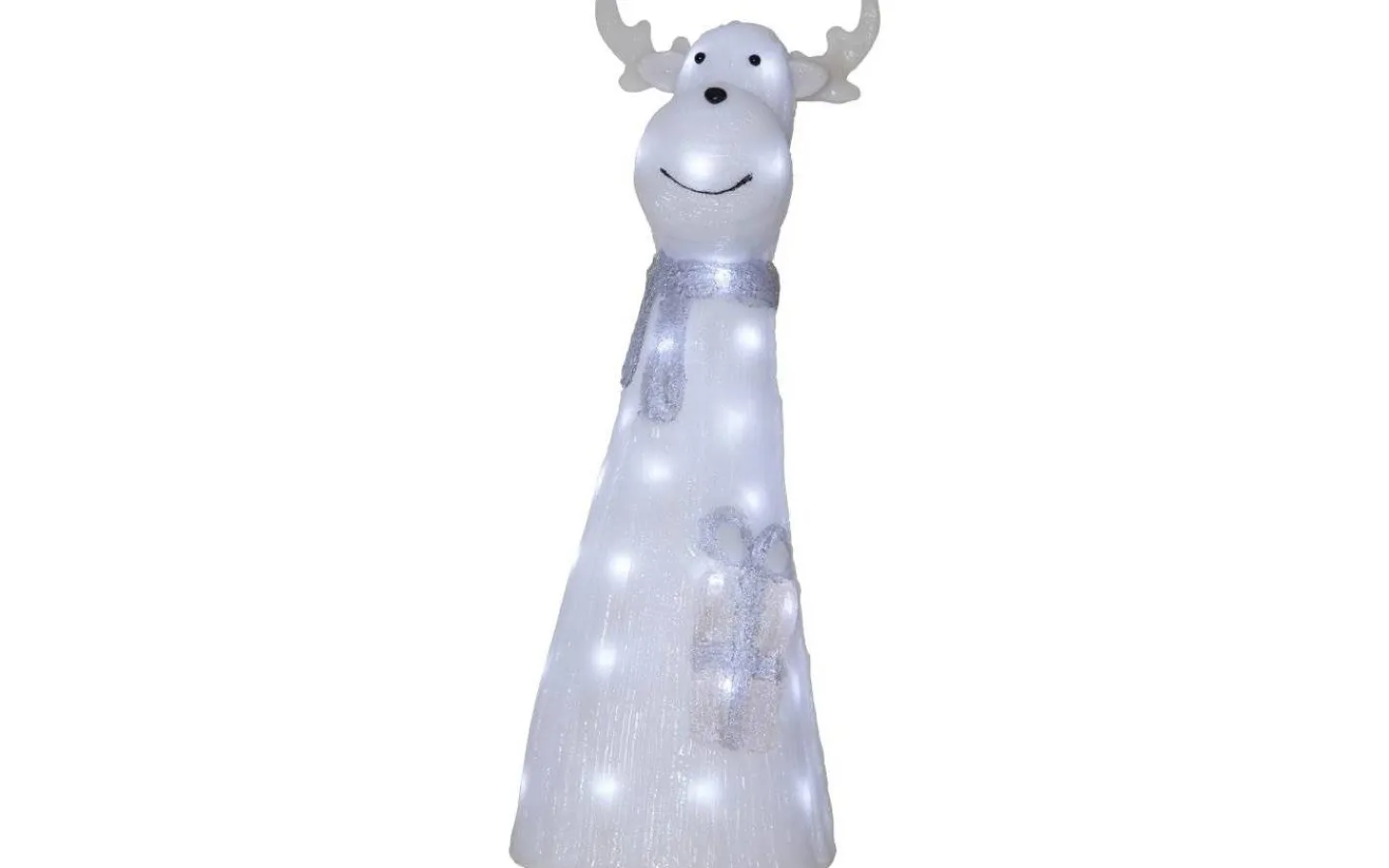 Denna dekorationsfigur kan bli en kul detalj att ha i trädgården, vid entren eller som julprydnad inomhus. Renen har 40st inbyggda neutralvita ljuskällor i LED och levereras komplett till dig med en 5 meter lång anslutningskabel med transformator och stickkontakt för vägguttag.