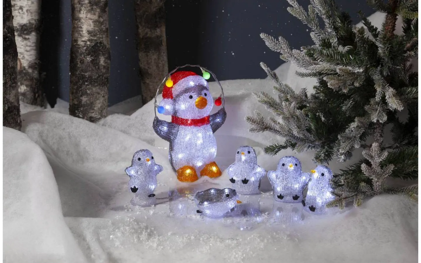 Söta pingviner i akryl, från Star Trading, som passar utmärkt som utomhusdekoration under vintern. Denna dekoration gör sig bra på trappen utanför ytterdörren eller på valfritt ställe i trädgården/balkongen och hjälper dig att skapa en härligt välkomnande utemiljö!