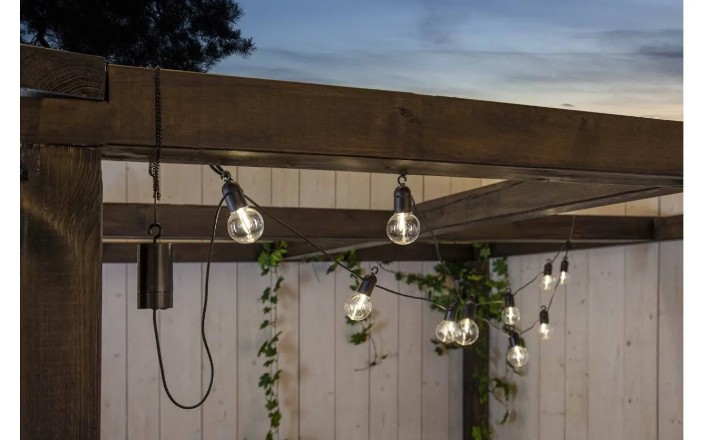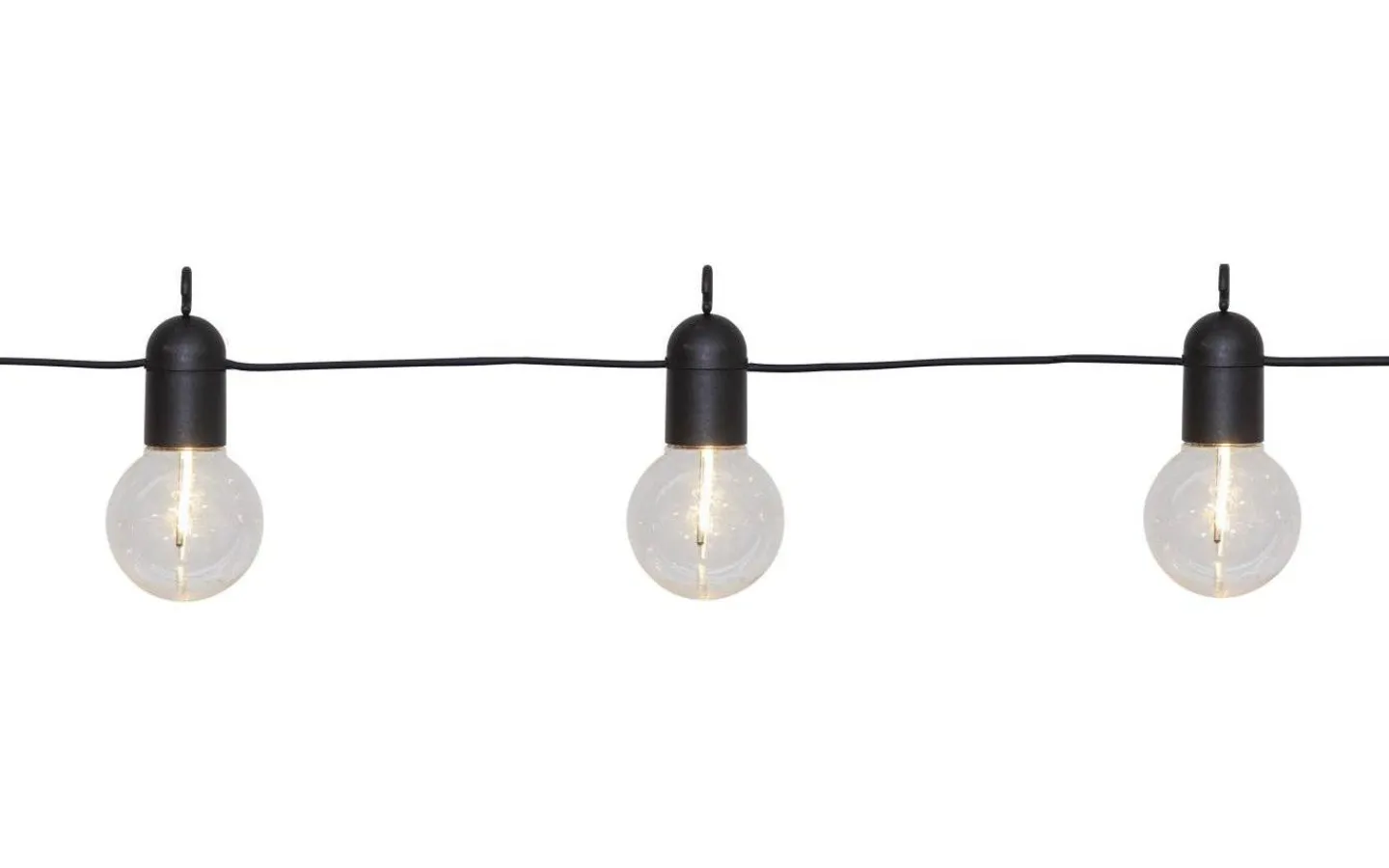 Fiesta är en fin, batteridriven ljusslinga, från välkända varumärket Star Trading, som passar perfekt till att dekorera balkongen eller uteplatsen med. Ljusslingan är 3,6 meter lång och har 10 lampor med inbyggd LED som avger ett dekorativt, varmvitt ljussken. Det är 40 cm mellan varje lampa.