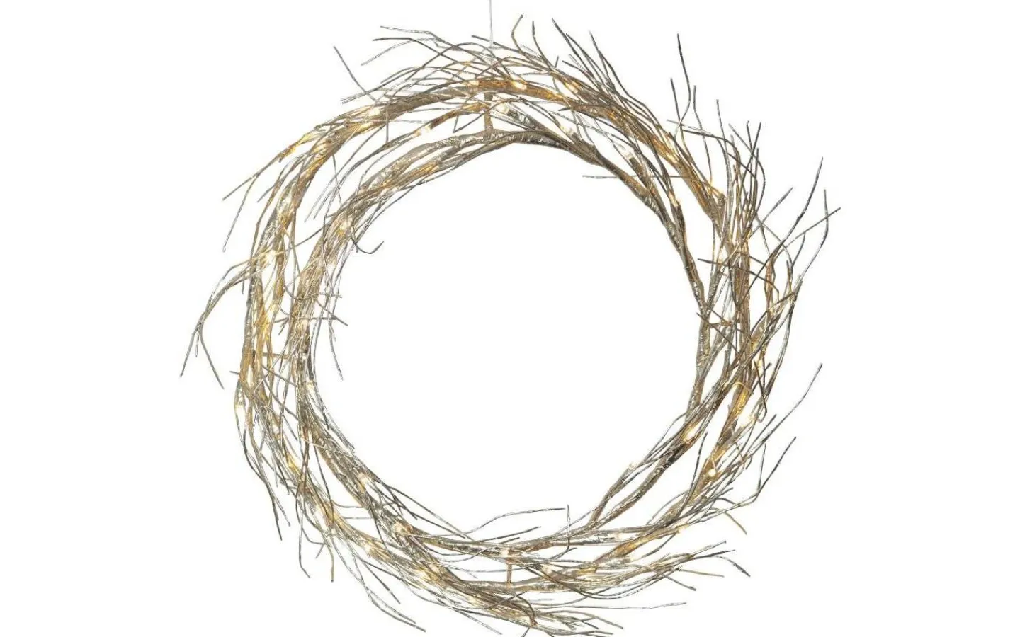 Fizzy Krans, från välkända Star Trading, är en vacker guldfärgad krans med två träliknande ringar med kvistar. Det är 50 stycken små ljuspunkter utplacerade på ringarna som lyser i ett härligt varmvitt sken. Häng på insidan av dörren, längs väggen eller i fönstret för att skapa en stämingsfull miljö! Levereras med en 5 meter lång anslutningskabel med transformator och stickkontakt för vägguttag.
