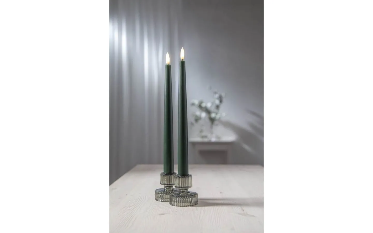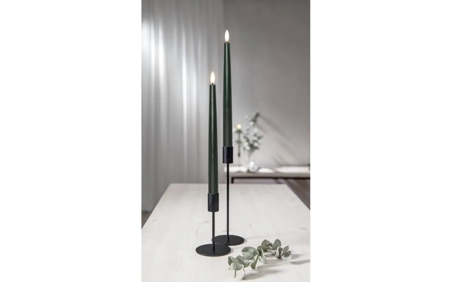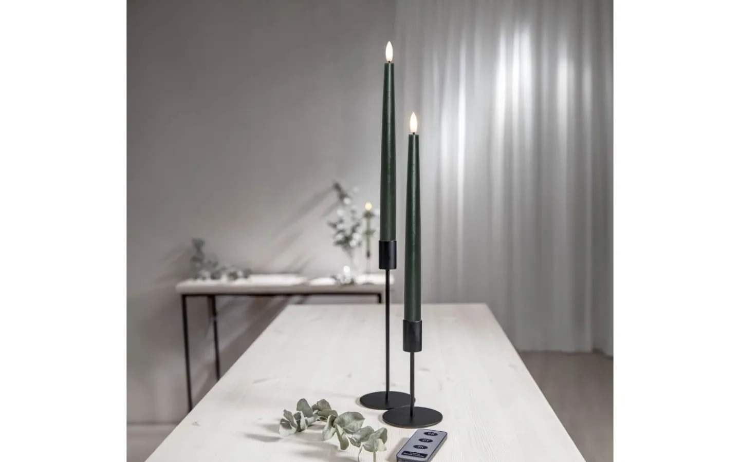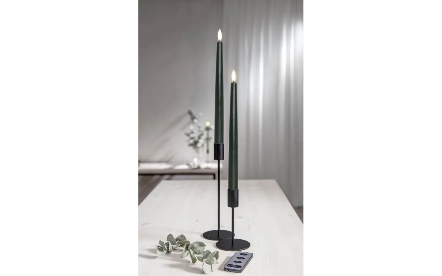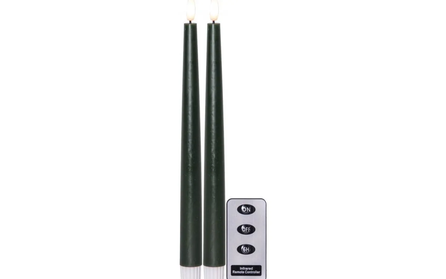 Detta är ett 2-pack med ljus som är 28,5 cm långa samt en fjärrkontroll som gör att du enkelt kan tända och släcka ljusen. Fjärrkontrollen har även en knapp för timerfunktion, trycker du på denna så lyser ljusen i 6 timmar och tänds igen samma tidpunkt dagen efter. Dessa ljus är 2,1 cm i diameter över bredaste punkten.