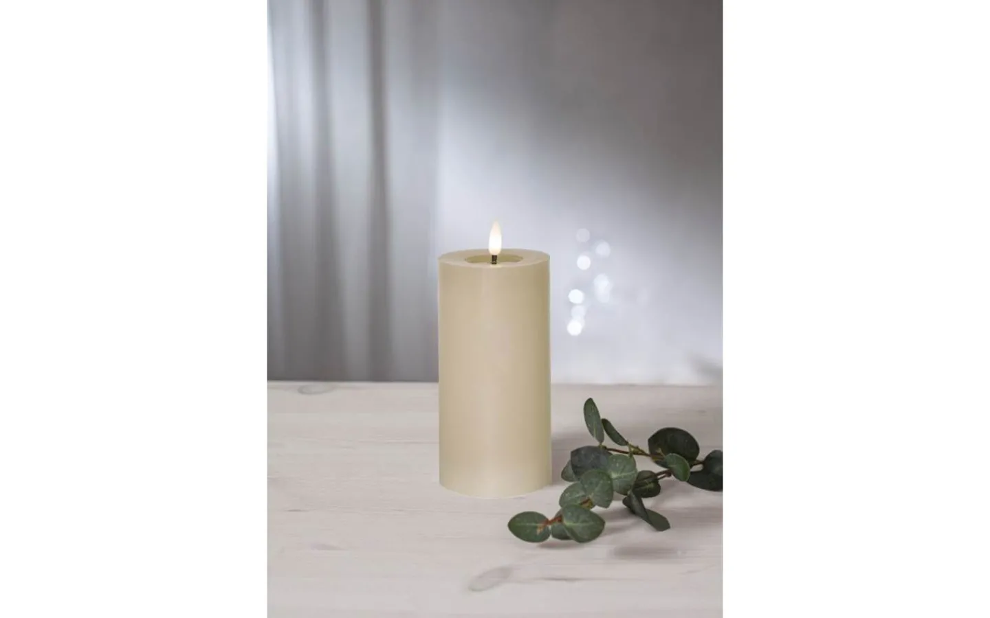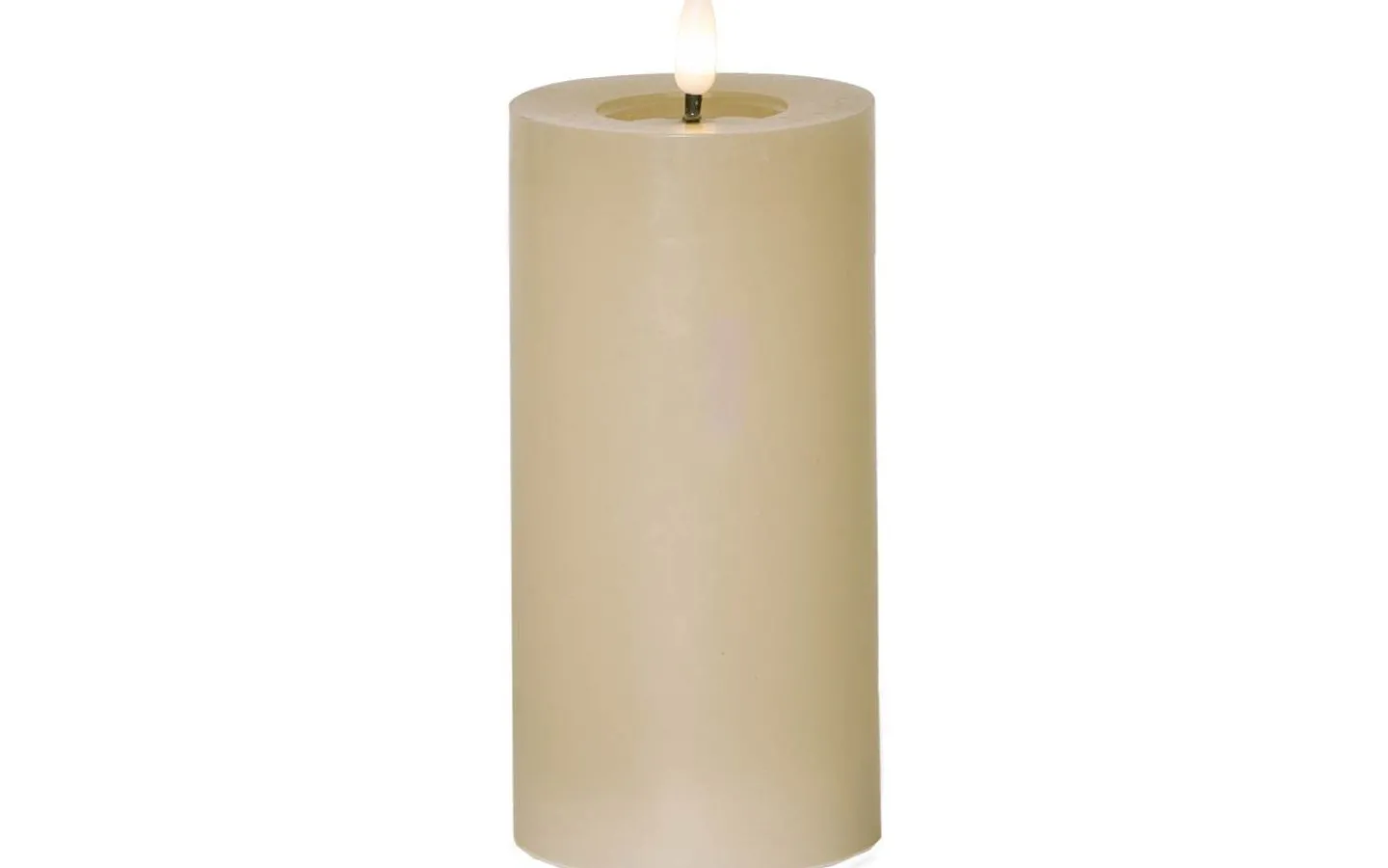 Ljuset har en svart veke med rund 3D-låga som lyser i ett mysigt varmvitt ljussken. Lågan skiftar i ljusstyrka för att avge ett vackert och verklighetstroget intryck.