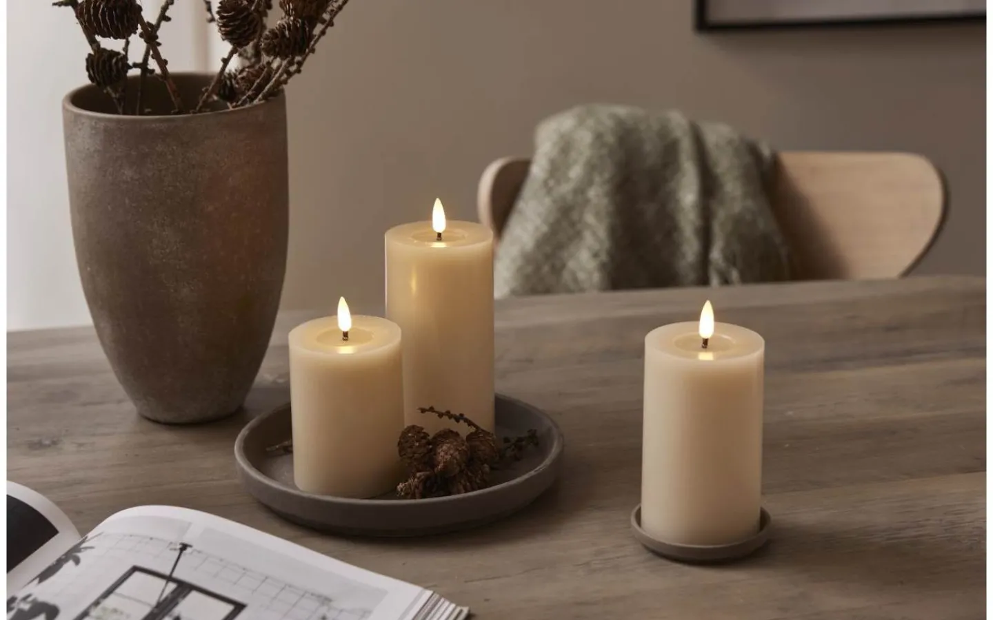 Flamme Flow batteridrivet blockljus från Star Trading är det vackert blockljus med en blank nedsänkning under lågan som ser ut som flytande vax vilket gör ljuset än mer naturtroget.