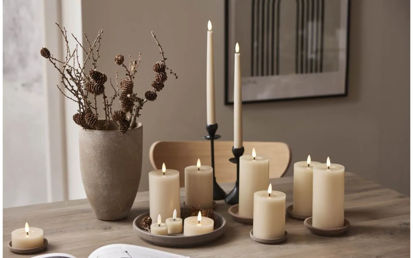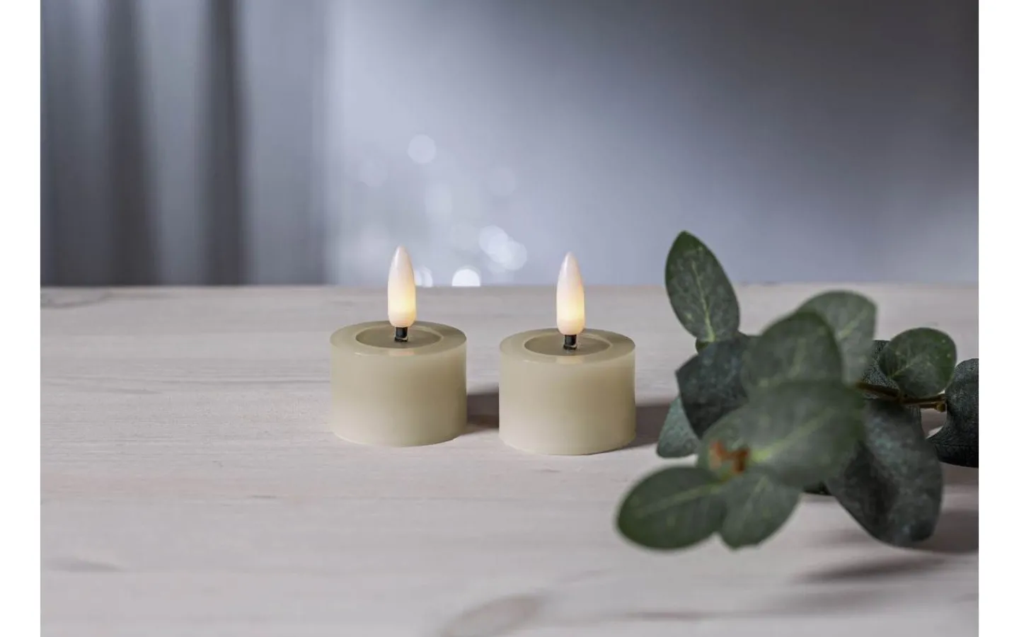 Flamme Flow värmeljus från Star Trading är ett 2-pack batteridrivna värmeljus i vax med en nersänkt blank yta som gör att det liknar flytande vax. Den naturtrogna runda 3D lågan är placerad på en svart veke och lyser i ett härligt varmvitt sken. Ljuslågan skiftar i ljusstyrka för att avge ett extra verklighetstroget intryck.