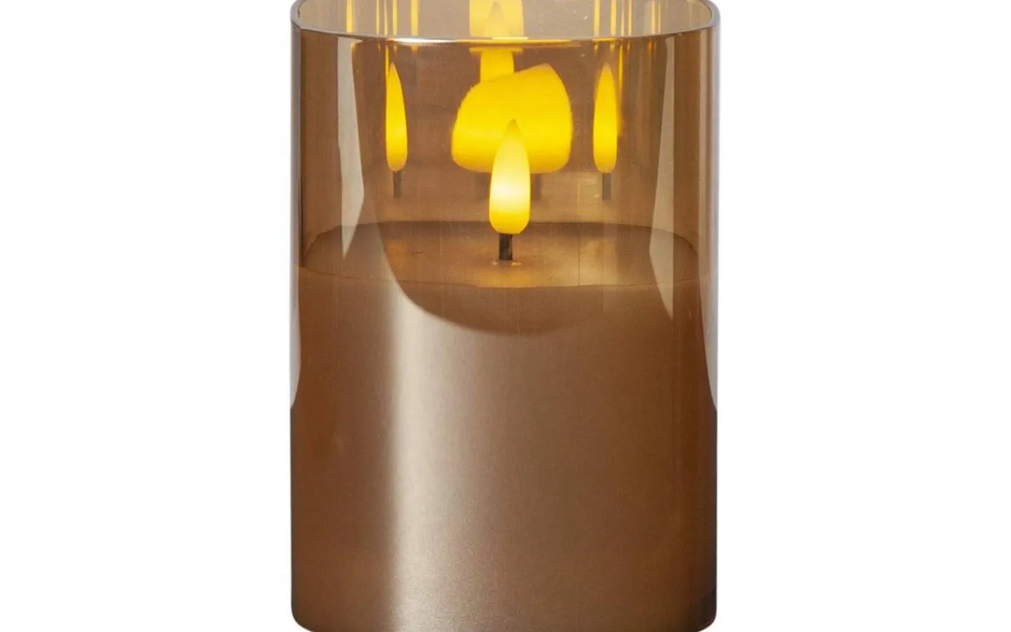 Flamme ljuslykta från Star Trading är ett superfint batteridrivet blockljus med ett glashölje runt. Ljuset har en svart veke med rund 3D-låga som lyser i ett mysigt varmvitt ljussken. Lågan skiftar i ljusstyrka för att avge ett vackert och verklighetstroget intryck.
