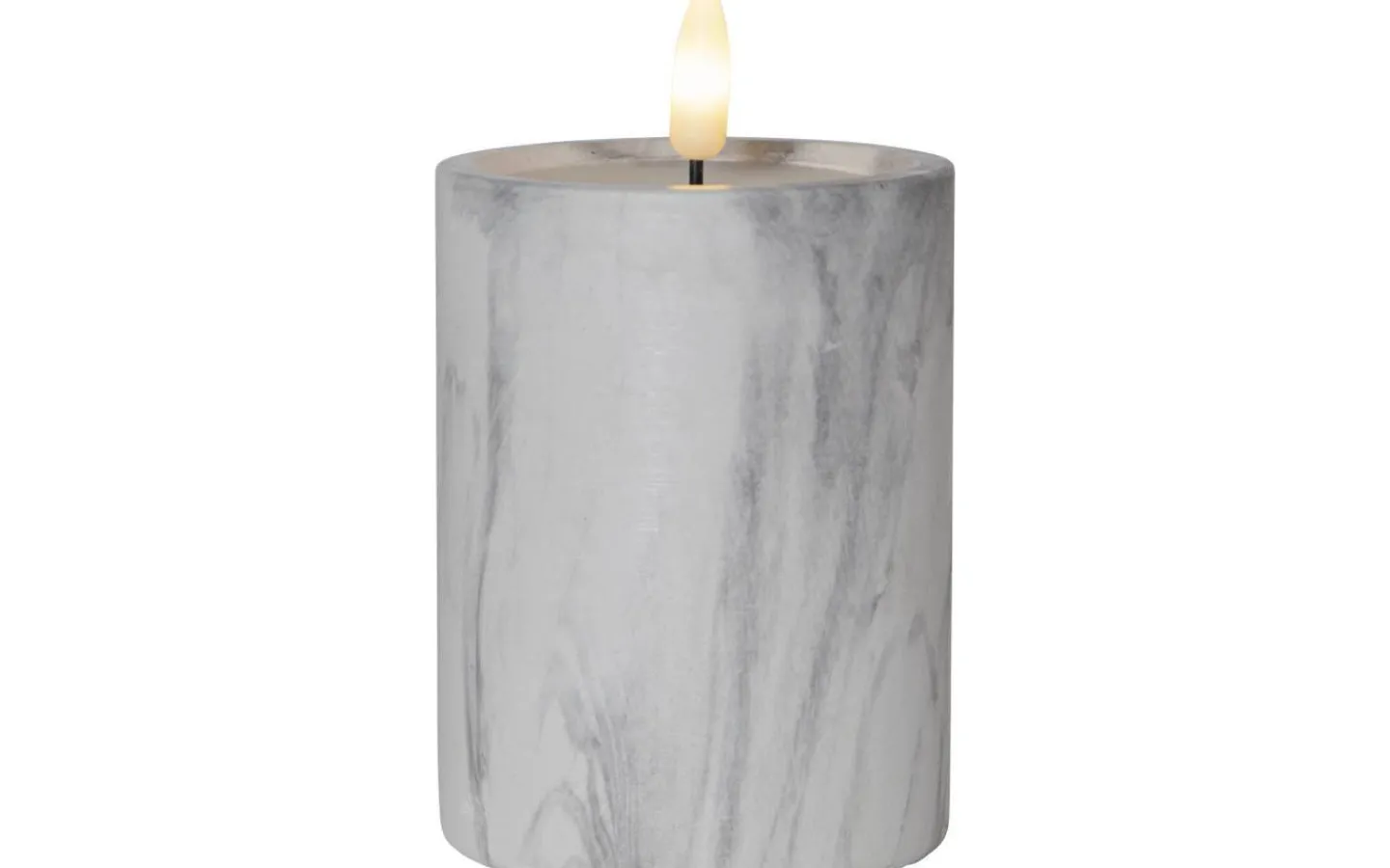 Flamme Marble från Star Trading är ett batteridrivet blockljus som har ett vackert grått marmormönster.