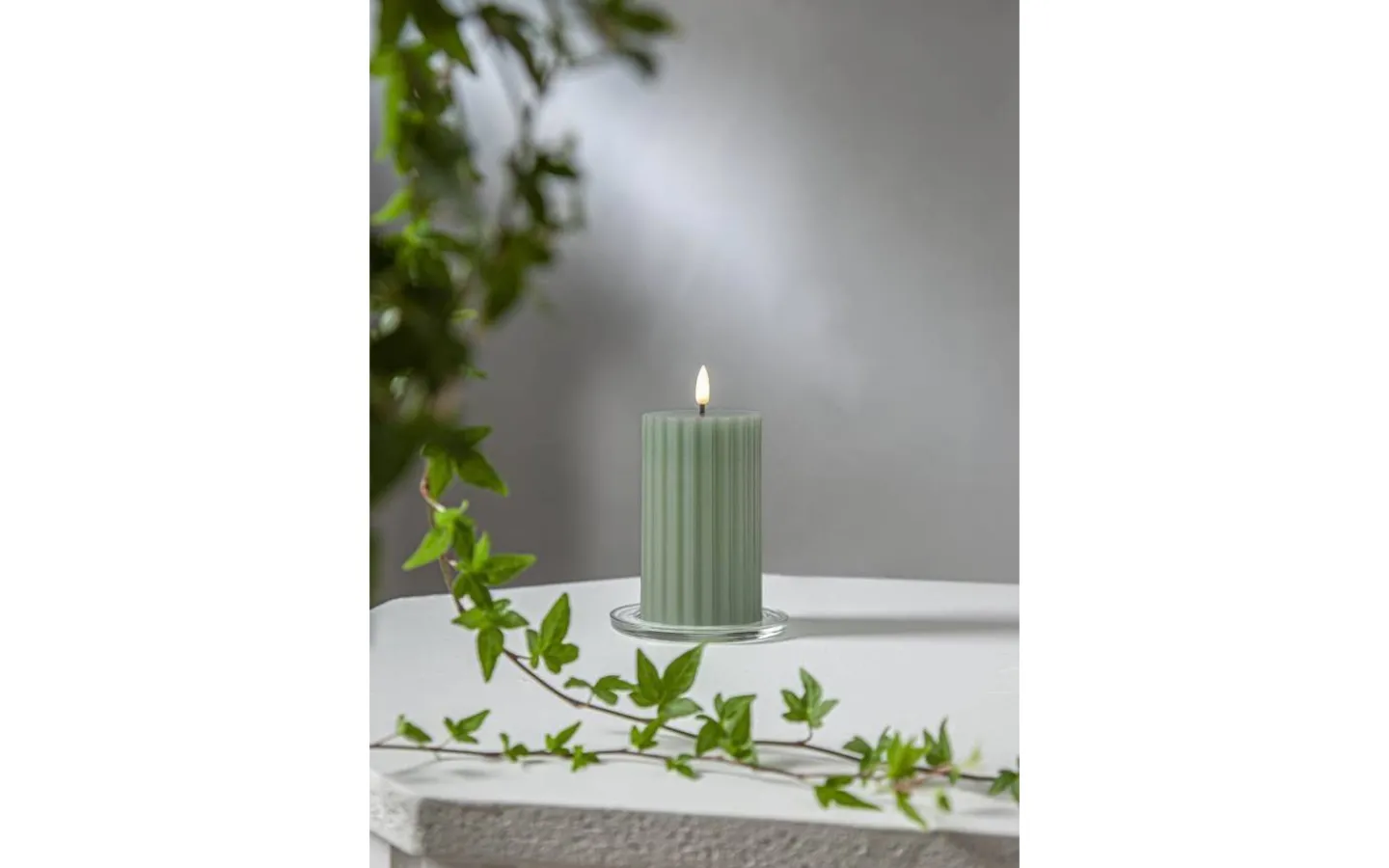 Flamme Stripe från Star Trading är ett härligt blockljus i räfflat vax. Den naturtrogna runda 3D lågan är placerad på en svart veke och lyser i ett härligt varmvitt sken. Ljuslågan skiftar i ljusstyrka för att avge ett extra verklighetstroget intryck.