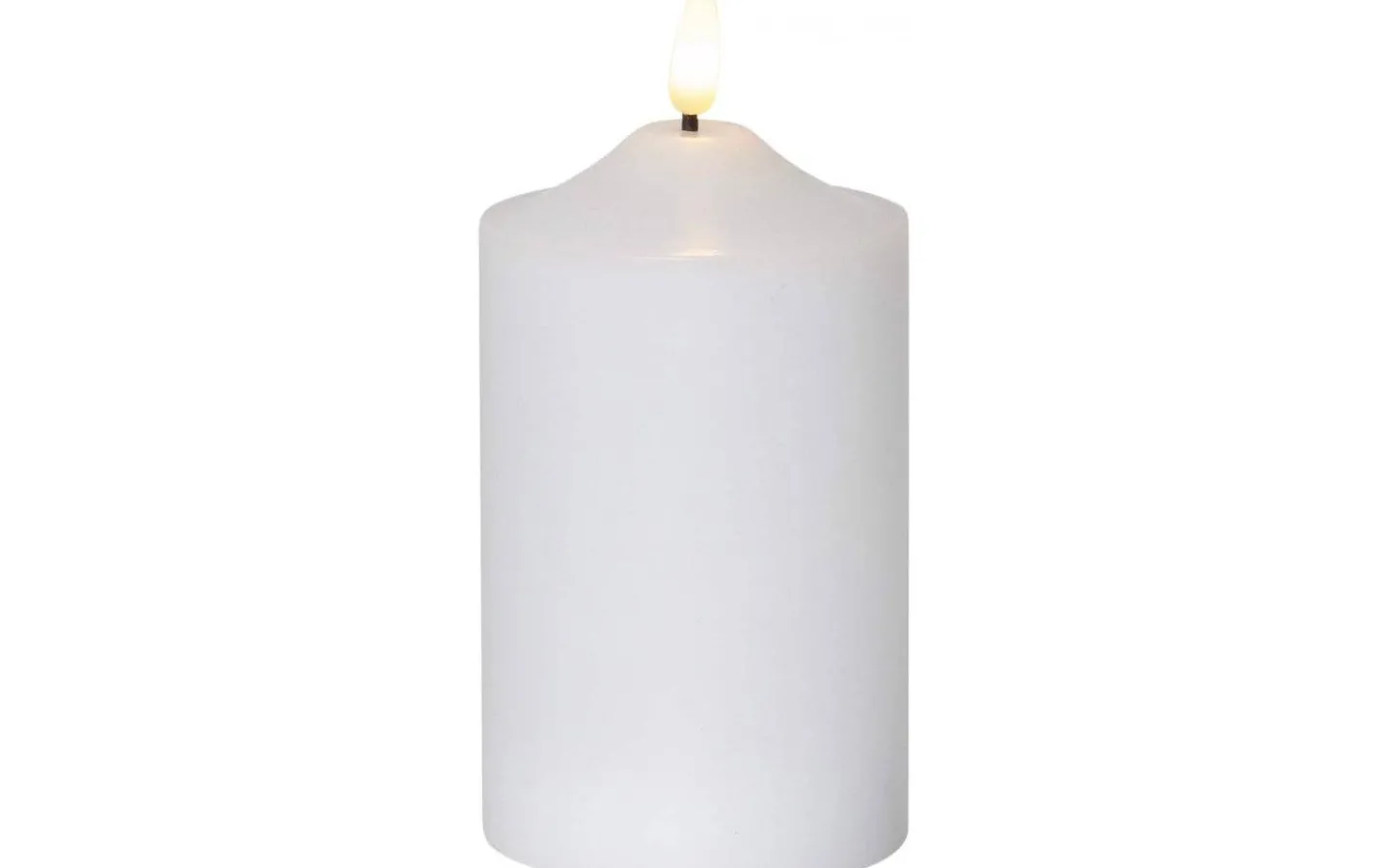 Detta fina blockljus har en svart veke med en rund 3D-låga som nästintill ser ut som en riktig låga. Ljuset lyser i ett mysigt varmvitt ljussken och lågan skiftar i ljusstyrka för att avge ett vackert och verklighetstroget intryck.