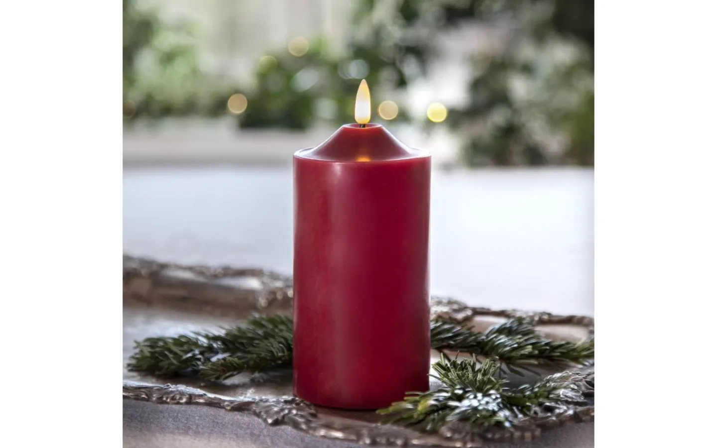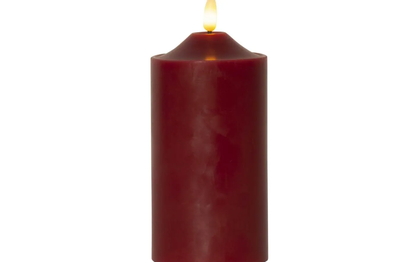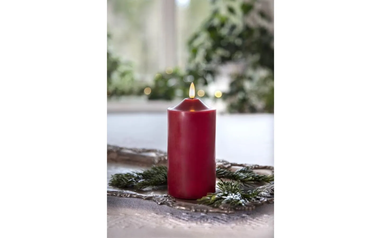 Detta fina blockljus har en svart veke med en rund 3D-låga som nästintill ser ut som en riktig låga. Ljuset lyser i ett mysigt varmvitt ljussken och lågan skiftar i ljusstyrka för att avge ett vackert och verklighetstroget intryck.