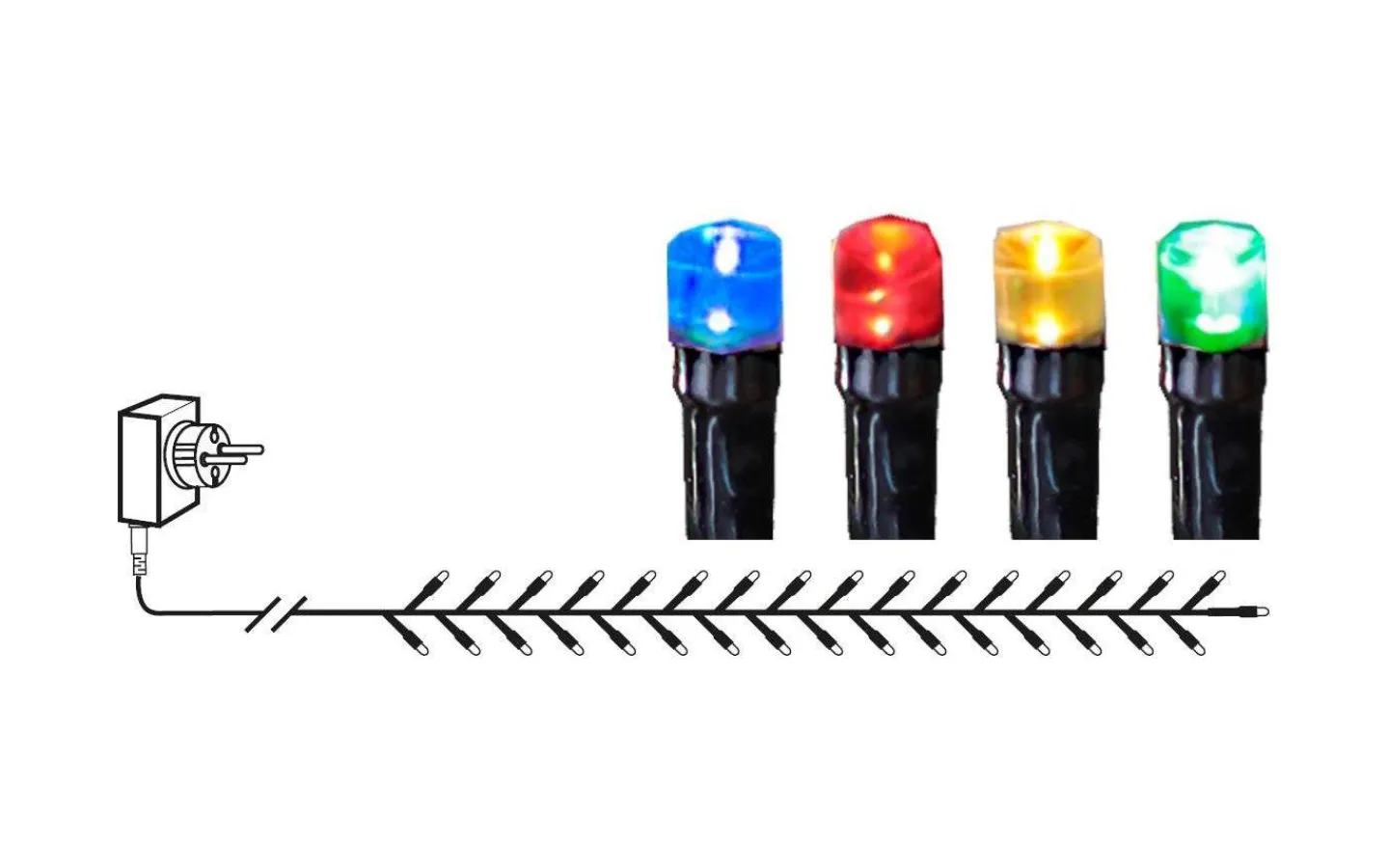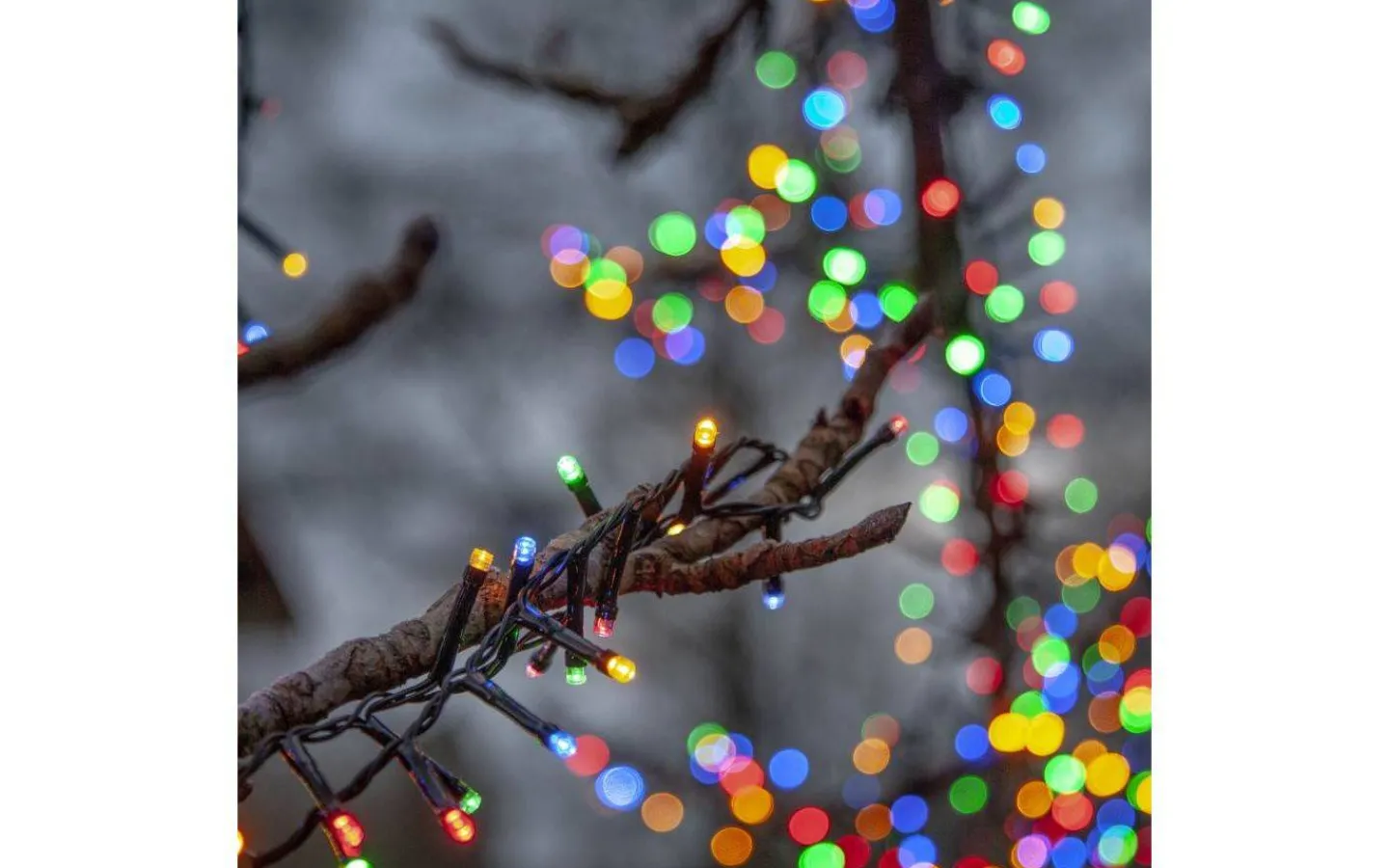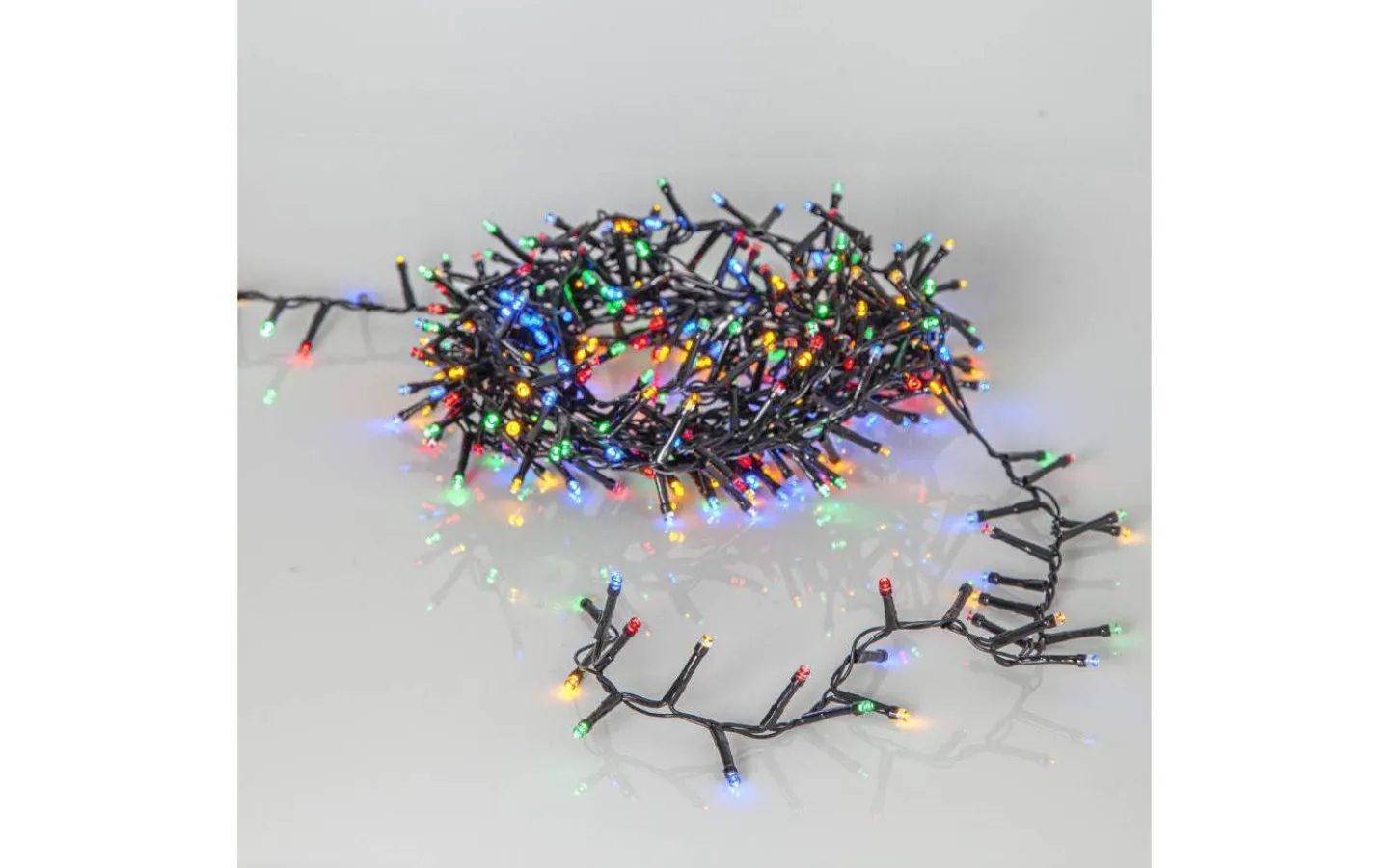 Ljusslinga med 1500 flerfärgade LED som ger ett härligt sken. Med 2 cm avstånd mellan lamporna blir slingan ca 30m lång. Perfekt för din trädgård, uteplats eller altan. Slingan har inbyggd timer och 8 funktionskontrollbox i transformatorn. Välj mellan stadigt sken eller olika blinkfunktioner. levereras med praktisk rulle för enkel förvaring när slingan inte används.