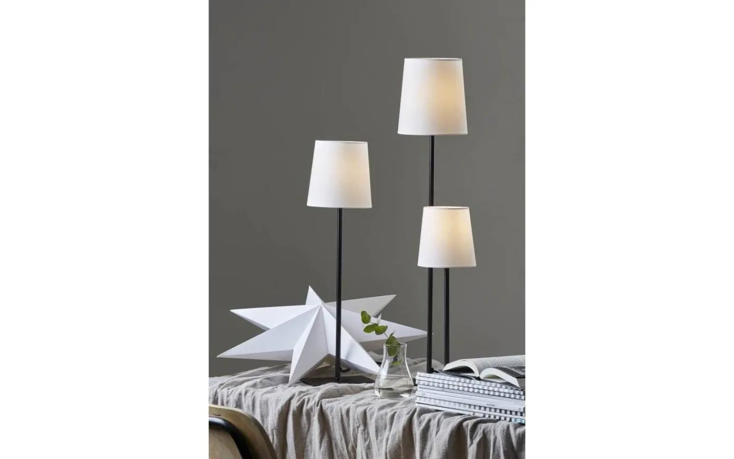 Frozen lampfot med skärm och stjärna, från kända Star Trading, är en 2 i 1 bordslampa då det både medföljer en klassisk vit skärm men också en vit julstjärna. Istället för att ta upp vardagslampan och ta ner julpyntet så kan du enkelt byta från pappstjärnan till skärmen. På så sätt har du en stilren bordslampa istället för julstjärna på fot. Frozen lampfot är alltså inte bara vacker utan också mycket funktionell.