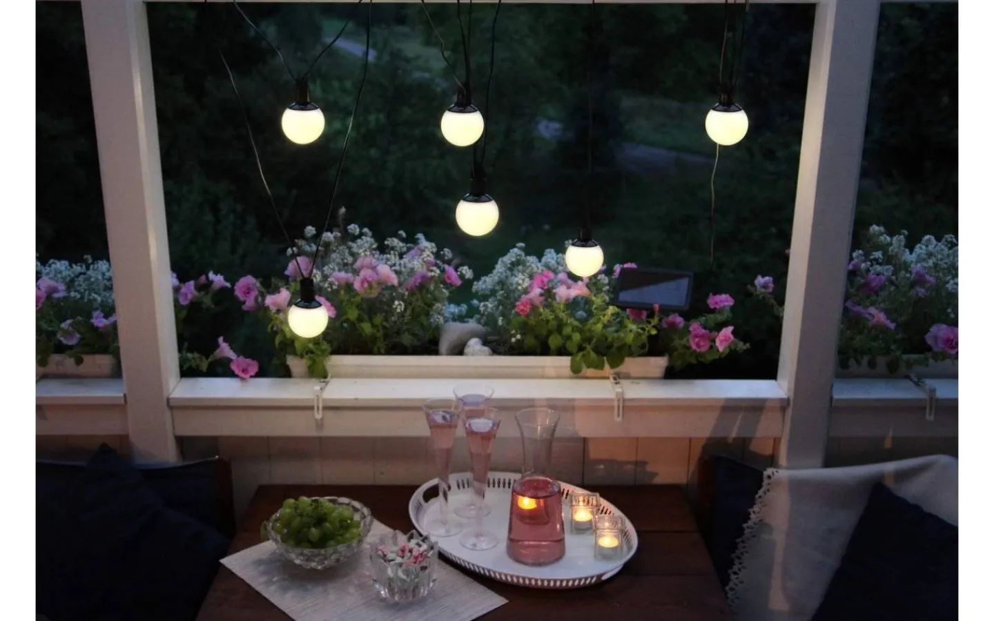 Oavsett användningsområde får du en härlig dekorationsbelysning som drivs av solenergi, och som avger ett mysigt varmvitt ljussken under mörker. Solcellsslingan tänds automatiskt när det blir mörkt och släcks igen när det blir ljust.
