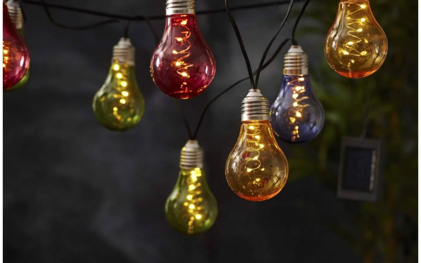 Glow är en dekorativ, solcellsdriven ljusslinga med 10 färgglada ljuskällor i LED. Inuti varje ljuskälla finns en vacker spiralformad ljustråd som avger ett mysigt varmvitt ljussken och precis som på gamla glödlampor så finns det en silverfärgad metallsockel i toppen på varje lampa. Dekorera balkongräcket, en vägg eller ett mindre träd på uteplatsen med denna fina, solcellsdrivna ljusslinga och så en härlig stämningsbelysning när mörkret faller på.