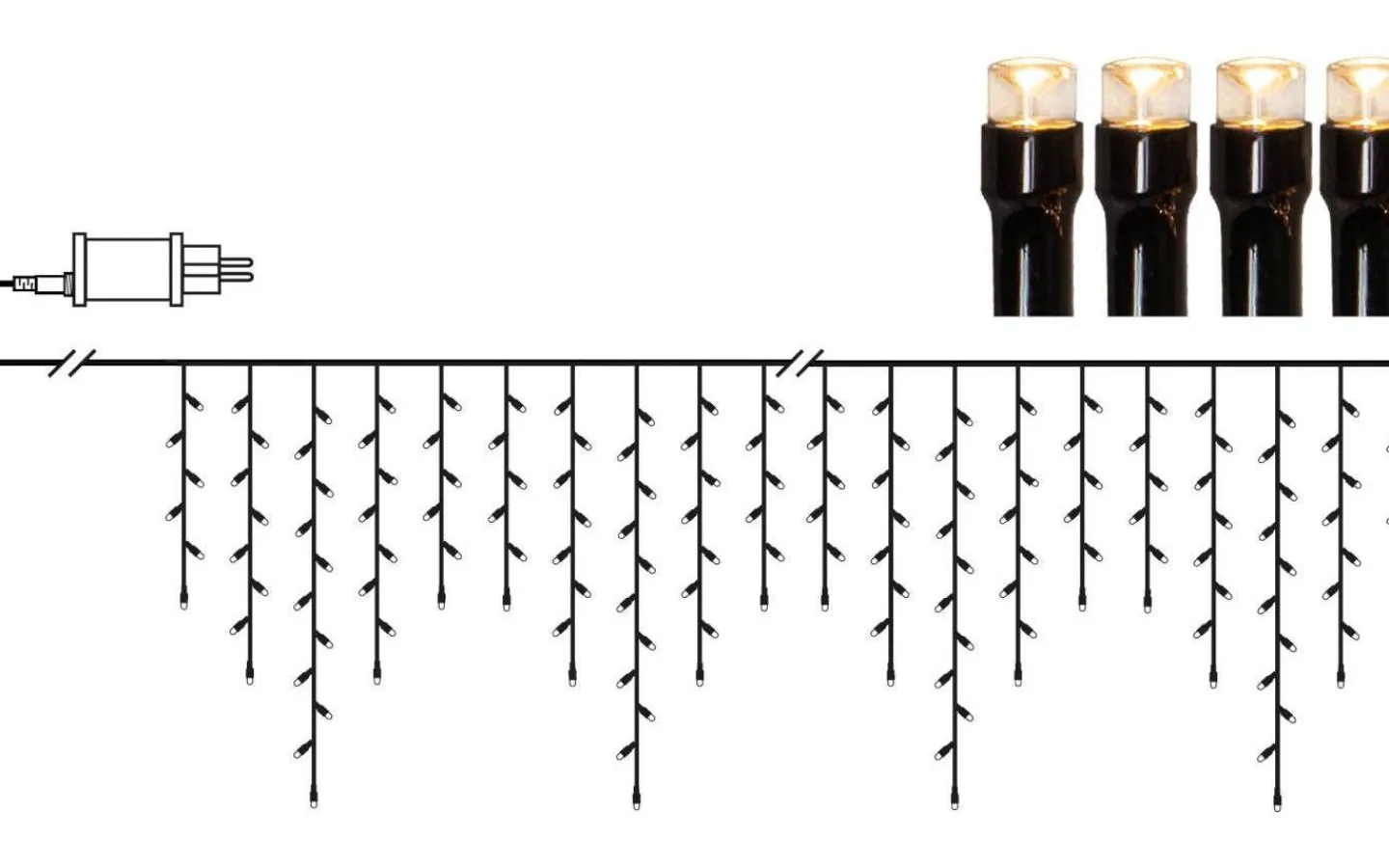 Istappsslinga med 960 LEDljuspunkter med vackert varmvitt ljussken. Slingan är ca 24 meter lång med istappar i tre längder, 15, 35 och 55 cm. Perfekt för dekoration i din trädgård eller på huset. Shiny Warm White är en prisvärd basserie.