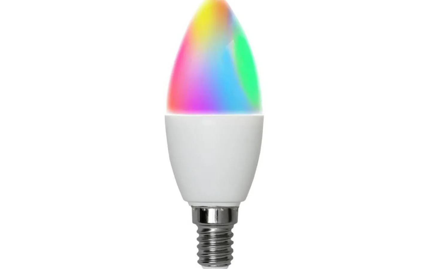 Ljuskälla i kronform med opal plastglob med E14 sockel. Ljuskällan har smart funktioner som styrs med hjälp av appen Smart Life från Star Trading. Ljuskällan har RGB+WW funktion vilket innebär att du kan välja mellan olika härliga färger samtidigt som du kan ställa den på varmvit ljussken och det vita ljuset som passar bra till arbete eller läsning.