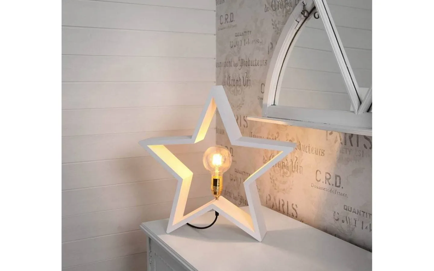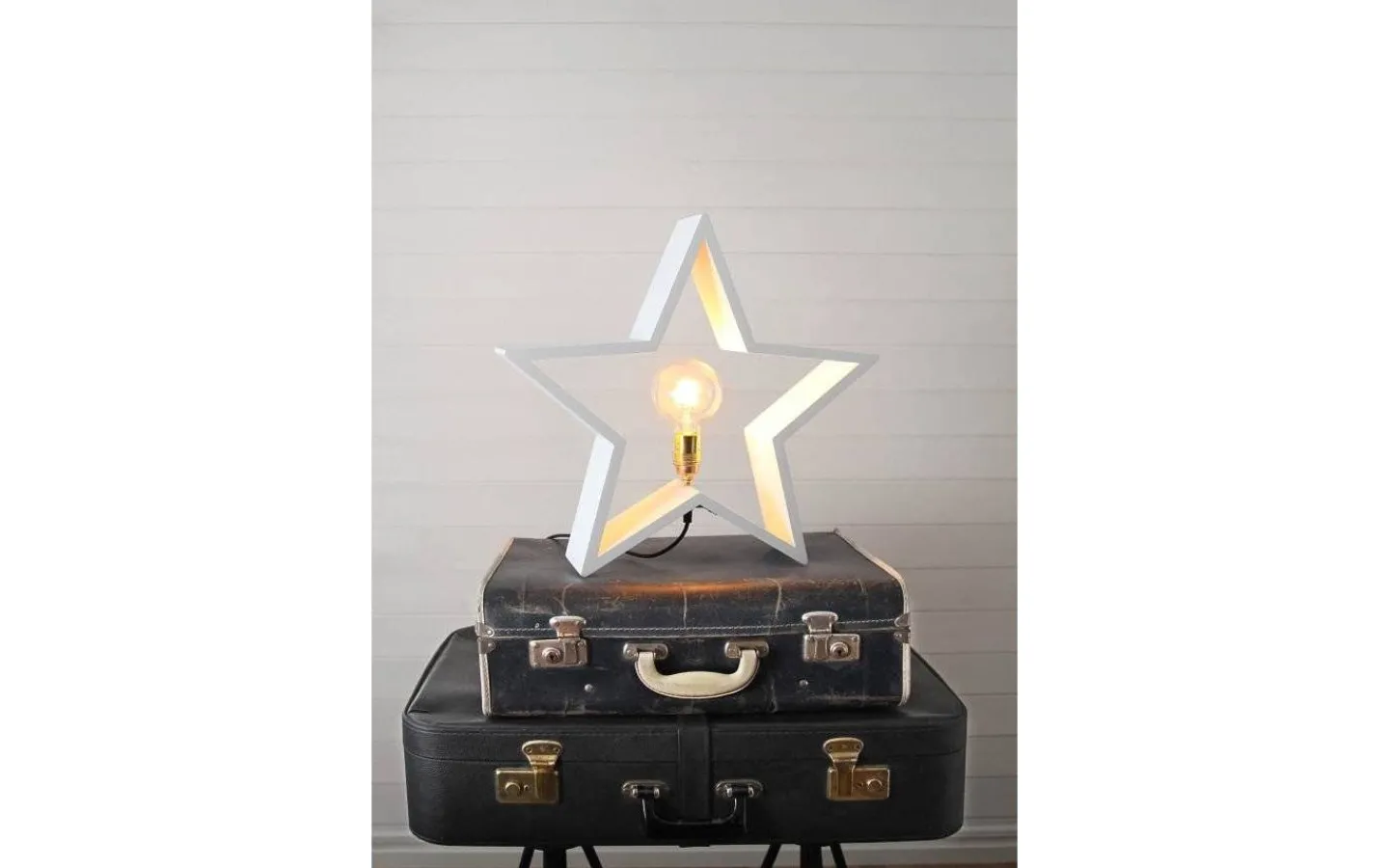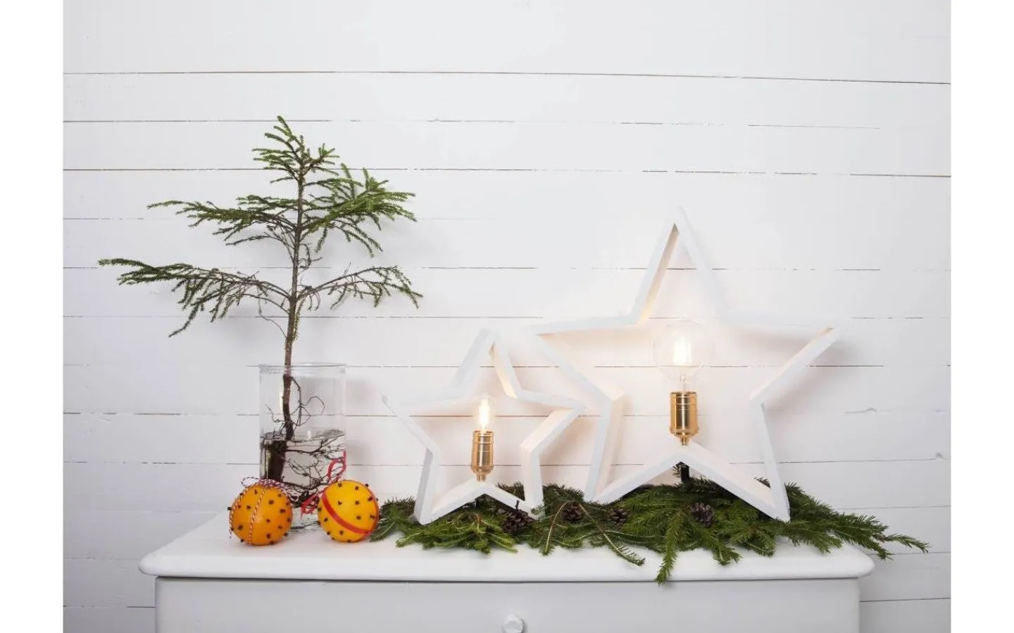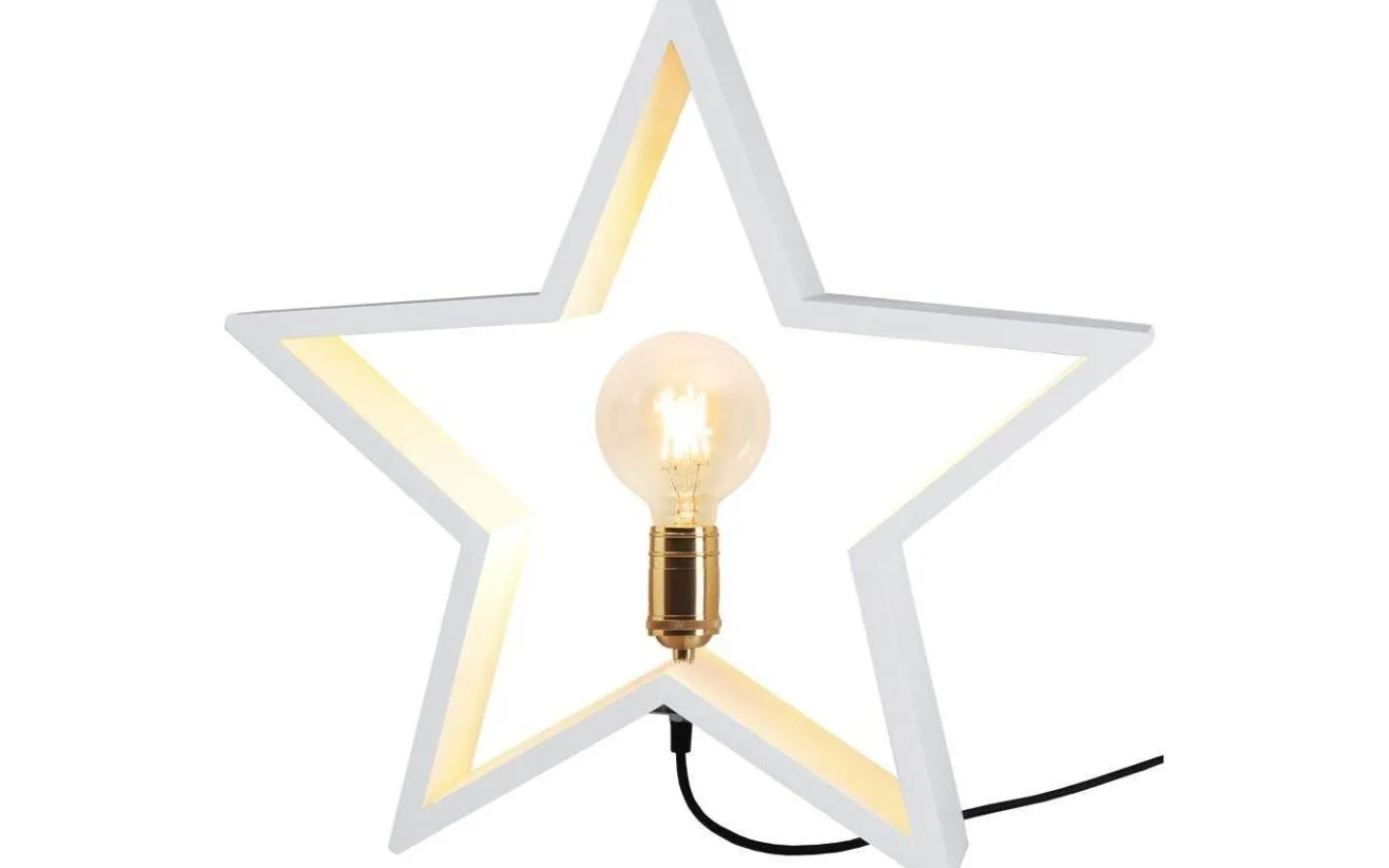Superfin stjärna i trä med metallsockel. Komplettera med en dekorativ ljuskälla, säljes separat – se under fliken ”Köp Till”. Stjärnan finns i tre färger, välj mellan svart, brun och vit.