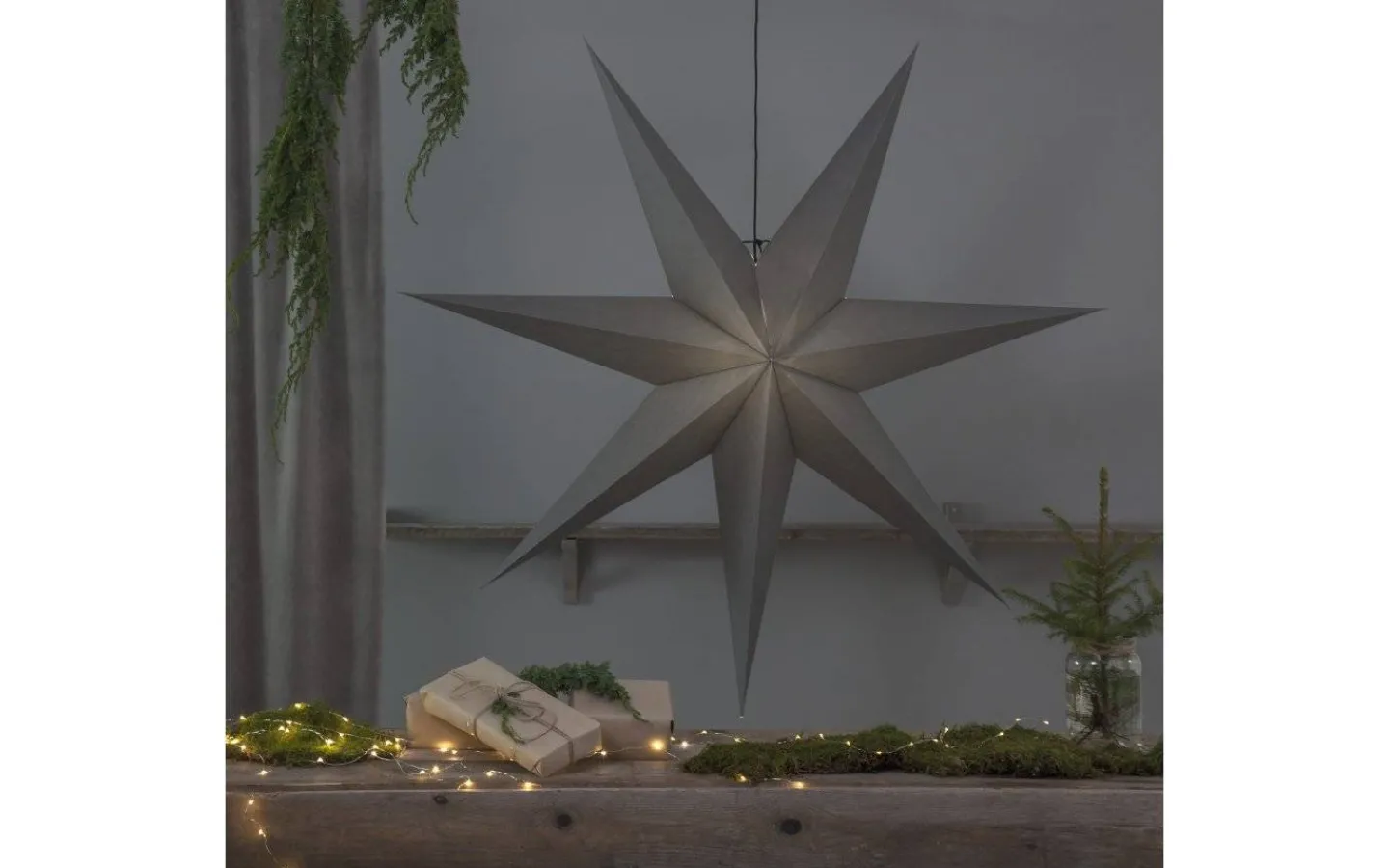 Vackra Ozen adventsstjärna, från Star Trading, är en hängande julstjärna i grå papp. Ozen stjärna gör sig lika bra i hemmets alla rum och hjälper dig att skapa en mysig julstämning, oavsett placering!