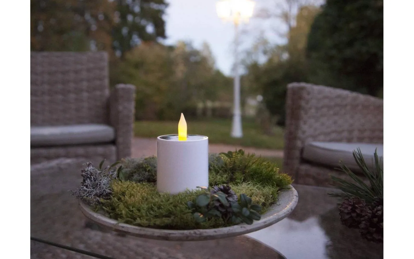 Saul är ett superfint, solcellsdrivet blockljus i vitt som blir en mysig dekoration och passar bra ljuslyktor utomhus. Den fina ljuslågan har inbyggd ljuskälla i LED som avger ett fint, varmvitt ljussken under mörker.
