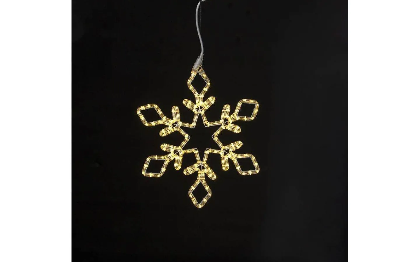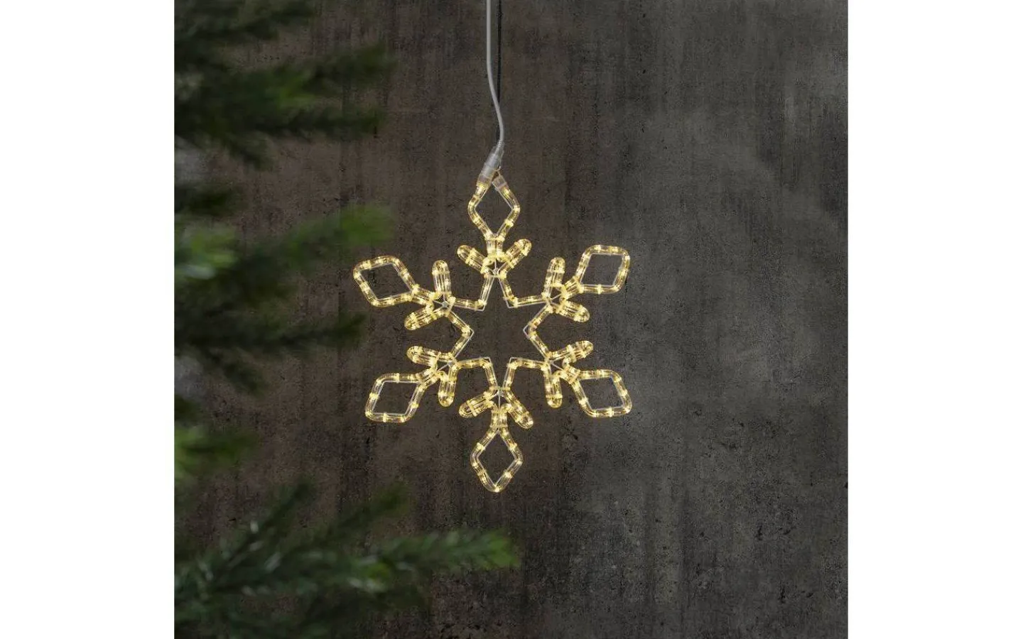 Härlig ropelightsiluett i form av en snöflinga som ingår i System LED från Star Trading. Snöflingan lyser upp i ett härligt varmvitt ljussken och är utbyggbar tillsammans med andra slingor från System LED.