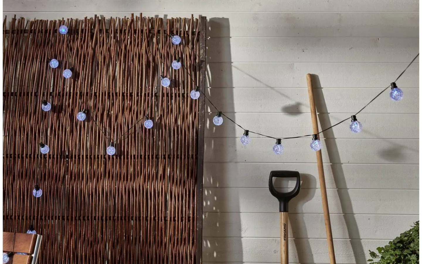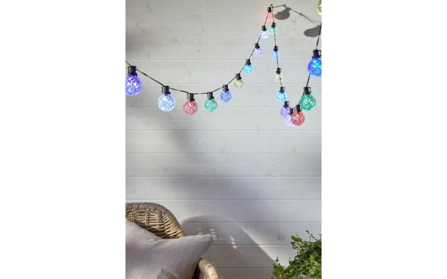 Ljusslingan levereras med en 3,5m lång anslutningskabel med transformator och stickkontakt för vägguttag. 1st CR2025 medföljer till fjärrkontrollen.