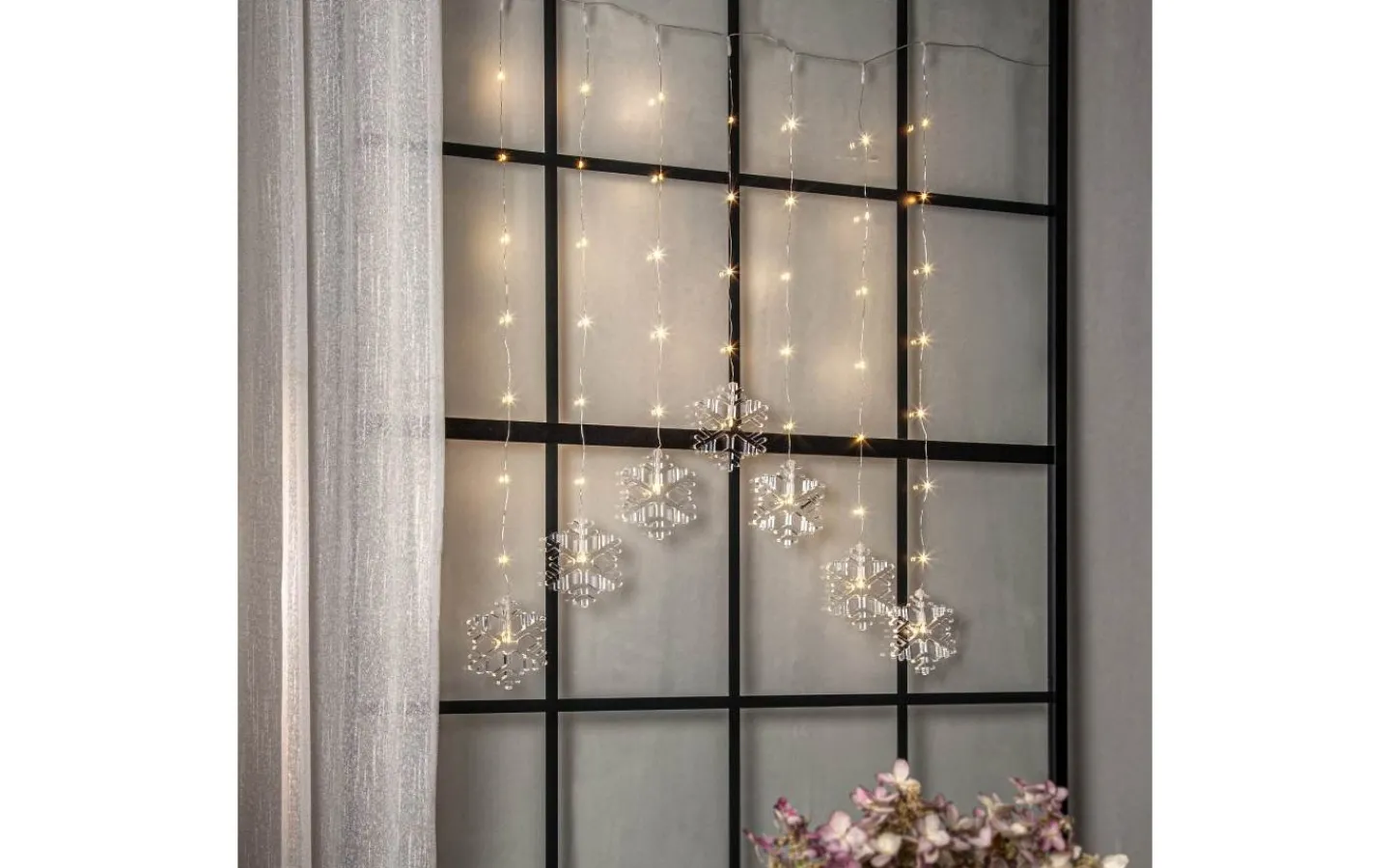 Snowflake från Star Trading en ljusslinga med 7 tunna metalltrådar som är försedda med små ljuspunkter och avslutas med dekorativa snöflingor som sprider ett vintrigt sken.