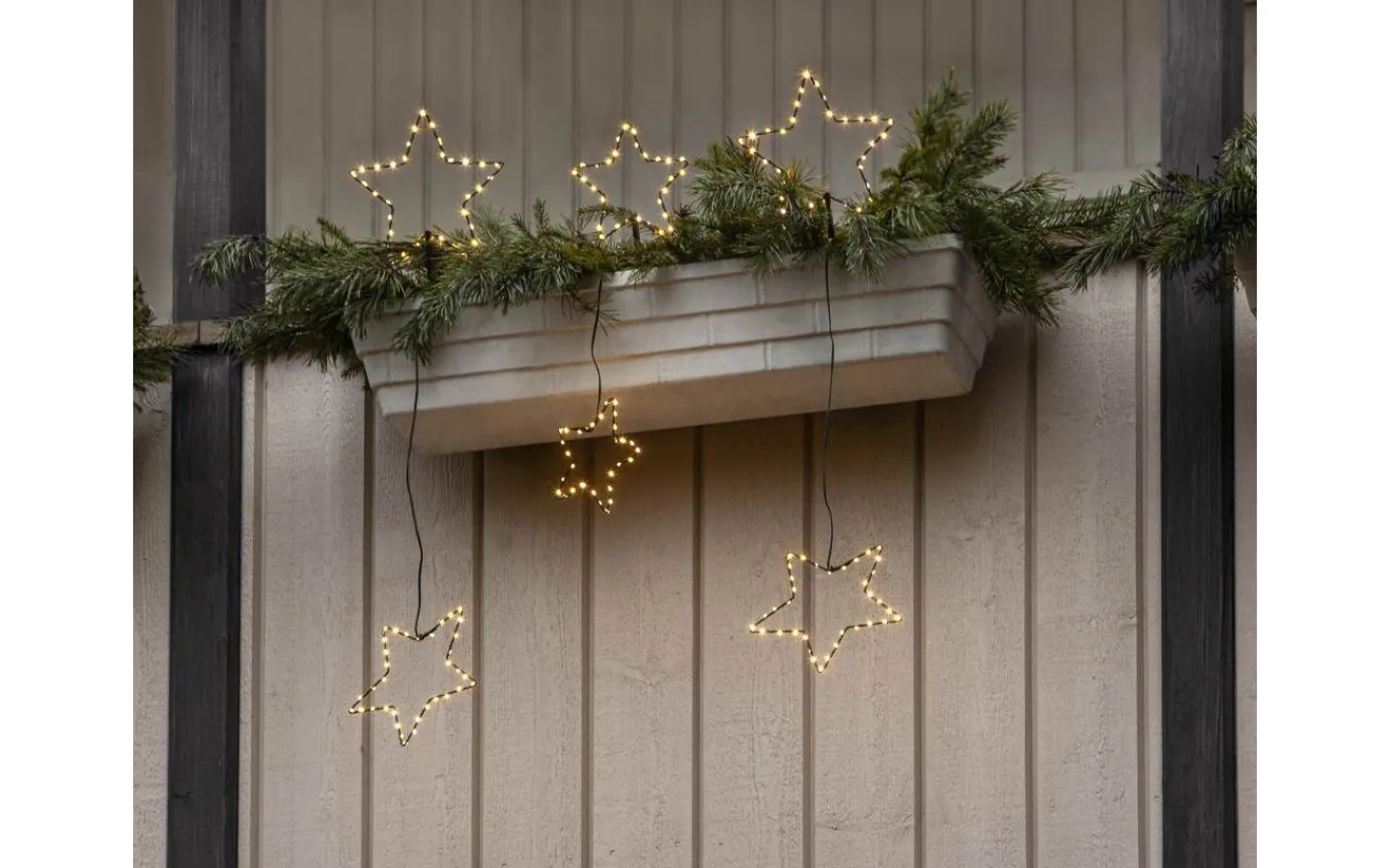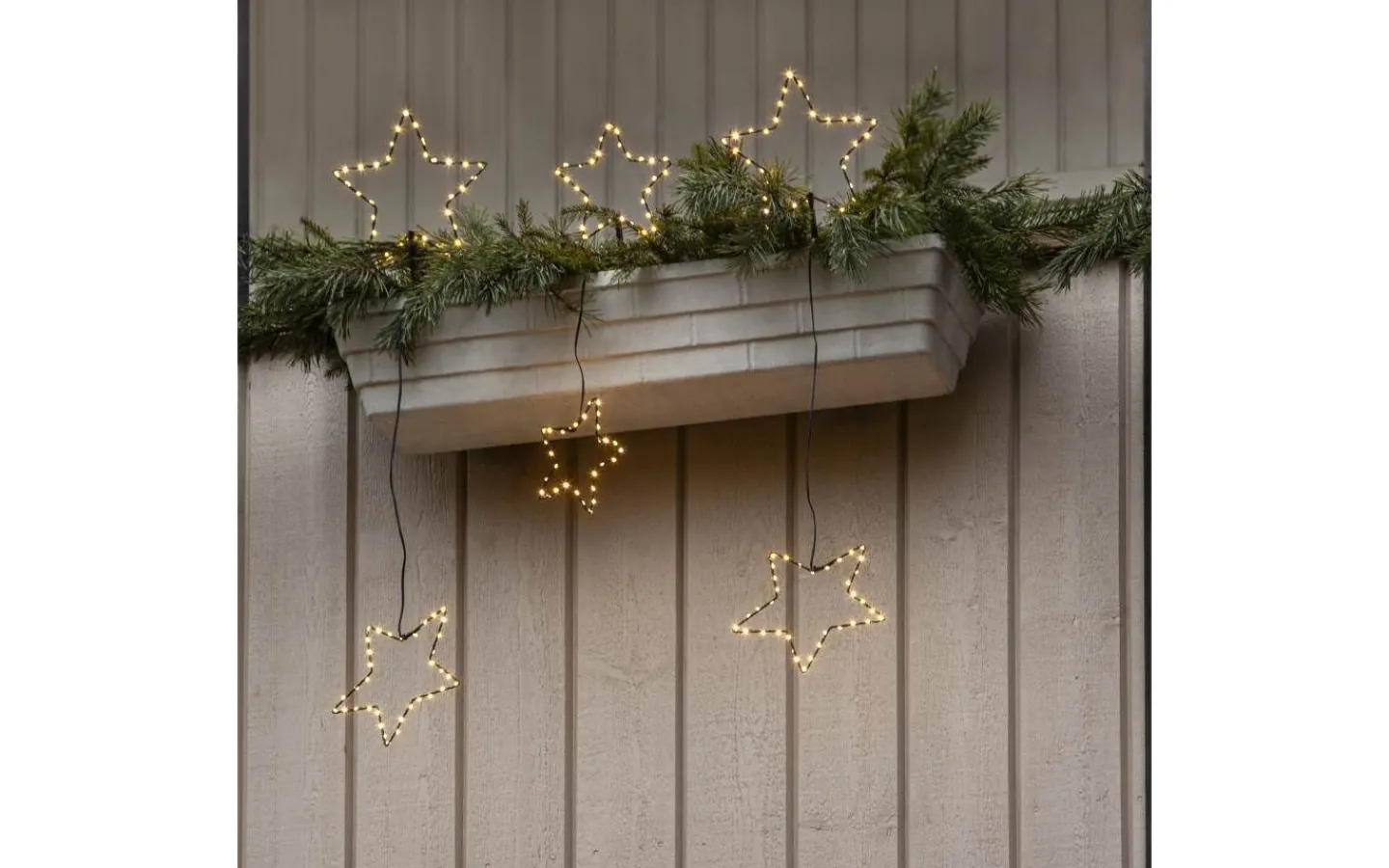 Stellas utomhusdekoration från Star Trading är ett set med 6 stycken stjärnor som lyser i ett varmvitt sken. De fyra stora stjärnorna är 20cm och de två små är 15cm.