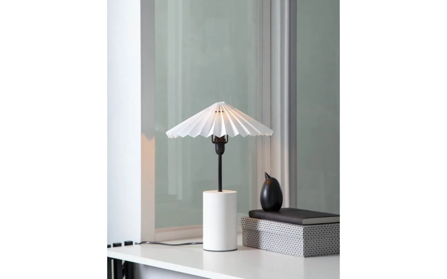 Stila bordslampa som kommer med båda en vit julstjärna och en fin vit veckad skärm, passar i hemmet året om. När säsongen skiftar, byter du enkelt ut till den skärm eller stjärna som passar bäst.